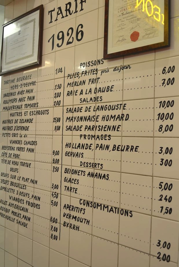 D’ailleurs, pour l’anecdote, sur les murs près de la cuisine, on retrouve toujours les prix (en francs belges) de l’époque où Chez Léon était encore une pure « friture », voyez la carte par vous-même. Les prix ont bien changés depuis !
