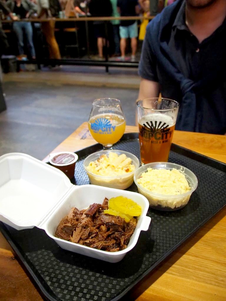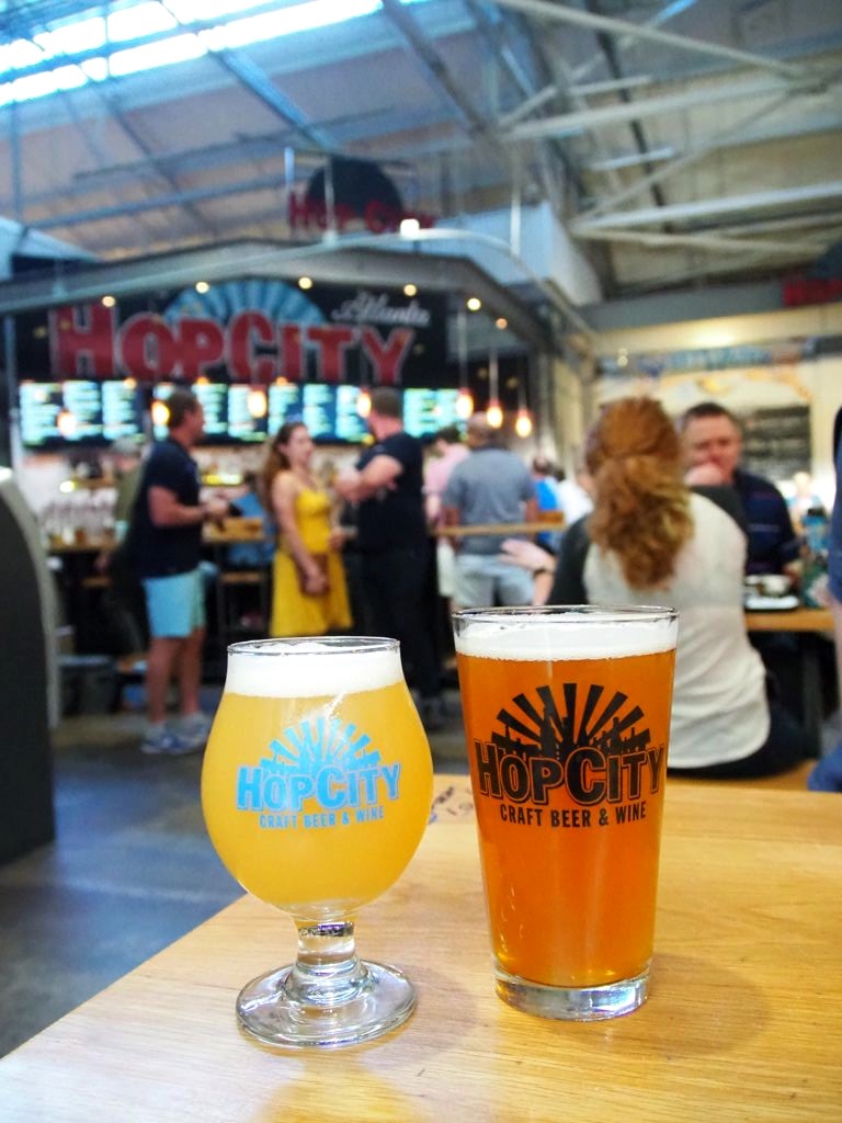 Autre option, un autre food market très sympa, le Krog Street Market, où nous avons mangé le second soir. Le Krog Street Market, plus petit que le Ponce City Market, se trouve aussi dans des anciens entrepôts réhabilités. L’ambiance était vraiment sympa. On a goûté aux bières locales chez Hop City et mangé un barbecue (mais c’était difficile de choisir, il y avait plein de choses qui nous faisaient envie !).