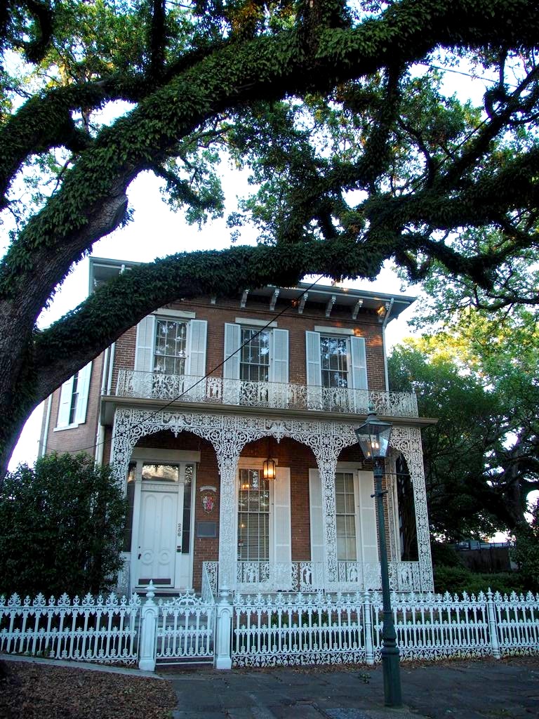 Mobile ayant été plus épargnée que la Nouvelle-Orléans par les catastrophes naturelles, on y trouve aujourd’hui pas mal de magnifiques maisons Antebellum (datant d’avant la guerre de Sécession), un centre-ville avec des balcons en fer forgé qui fait un peu penser au French Quarter (j’ai peu de photos de celui-ci car on a juste eu le temps de le voir en voiture…) et un côté moderne, avec même quelques gratte-ciel et une côte malheureusement assez industrielle, avec un port important et de nombreux chantiers navals. Un mélange de style vraiment intéressant, et assez unique dans la région !