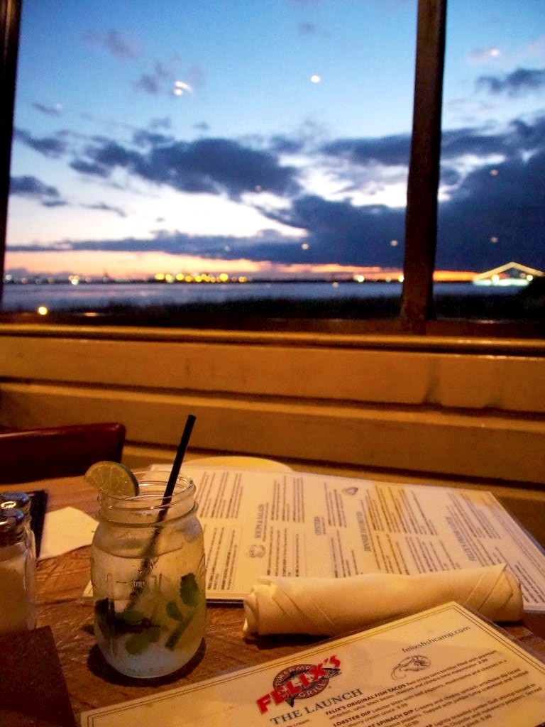 On a mangé au Felix’s Fish Camp, un restaurant de sea food situé dans la baie de Mobile, meilleur spot pour le coucher du soleil ! Sans réservation, on a patienté dans la partie bar avec de bons cocktails (un Moonshine Mojito et un Back Porch Tea !) et de la musique live en attendant notre table (on vous donne un boîtier qui buzze quand elle est prête !). On a finalement eu une des meilleures tables du restaurant, directement à la fenêtre face au coucher du soleil !
