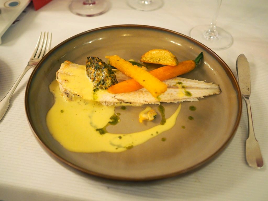Le plat de poisson était une sole de petit bateau braisée au plat, accompagnée de rémoulade, coques, polenta. Un plat très simple mais à nouveau, avec un beau savoir-faire.