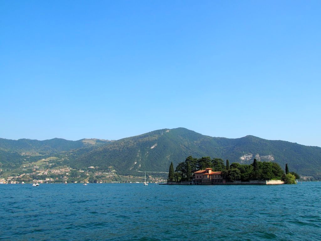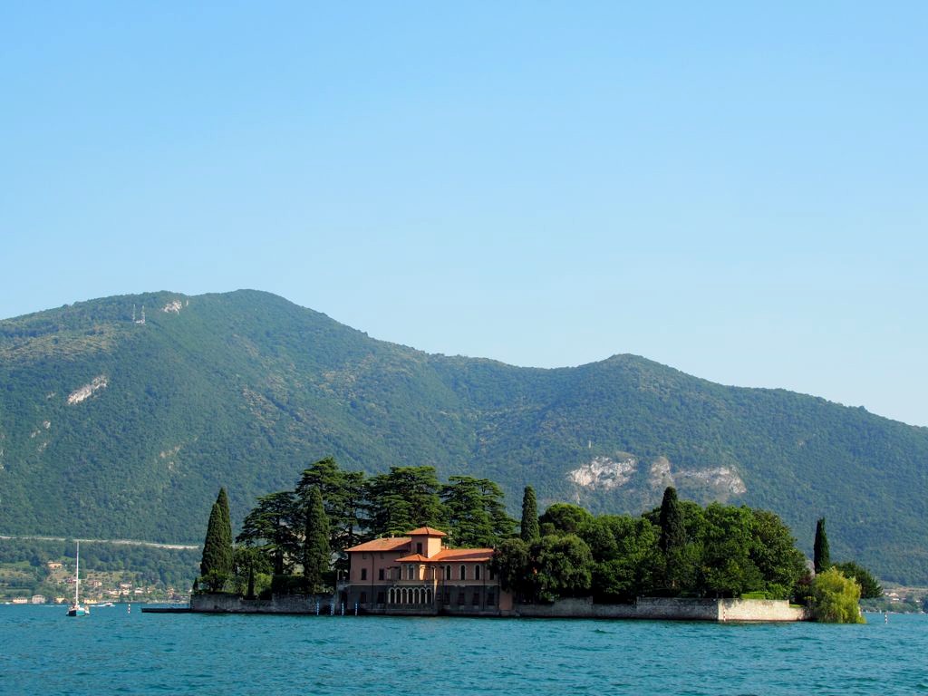 Cette île se trouve juste en face de sa grande sœur, l’île de Monte Isola, où nous allions passer la nuit. Mais avant de rejoindre celle-ci, nous l’avons traversée (pouvant au passage admirer quelques bâtiments datant de la Renaissance !) pour arriver à la troisième et dernière île du lac d’Iseo, la Isola di San Paolo, une autre île privée où se trouve un ancien couvent, mais qui appartient aujourd’hui à la famille Beretta (celle des armes, oui).