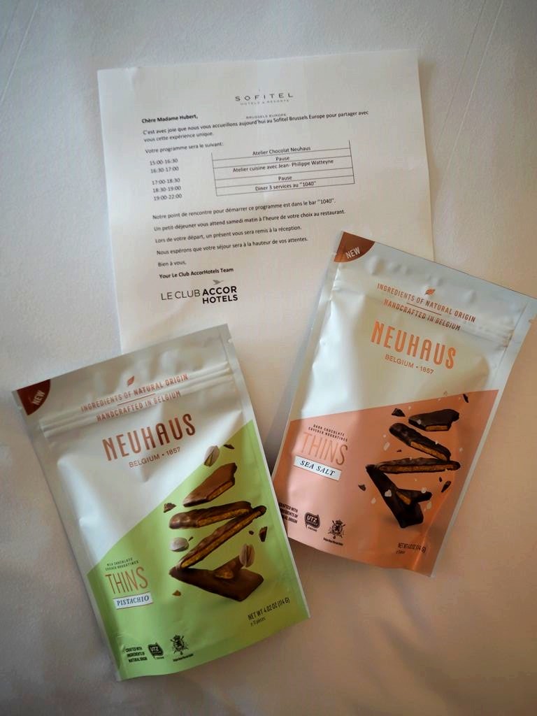 L’expérience a commencé l’après-midi avec deux workshops en petits groupes. Nous avons été accueilli avec un petit verre au bar. J’ai d’abord participé à l’atelier découverte des pralines Neuhaus, dans la boutique Neuhaus de l’hôtel. On a pu goûter à TOUTES les pralines que l’on voulait, plutôt sympa !