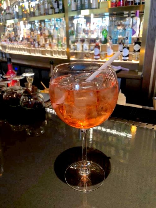 De retour au bar du 1040, nous avons à nouveau pu commander ce que nous voulions au bar. J’en ai profité pour goûter à un cocktail original à base de produits belges, le « Belga Spritz » au bitter de la Distillerie de Biercée et au Chant d’Éole, le fameux vin mousseux récompensé qui fait beaucoup parler de lui en ce moment.