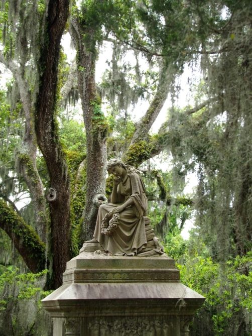 Le cimetière de Bonaventure se situe à quelques miles du centre-ville de Savannah mais vaut le déplacement. Situé le long de la Wilmington River, ce cimetière est devenu particulièrement connu à la suite de « Midnight in the Garden of Good and Evil »: une des statues du cimetière (la Bird Girl, aujourd’hui elle aussi déplacée dans un musée !) faisait la couverture du livre et certaines des scènes les plus marquantes du film y ont été tournées.