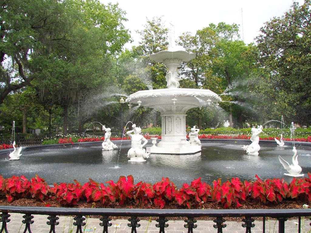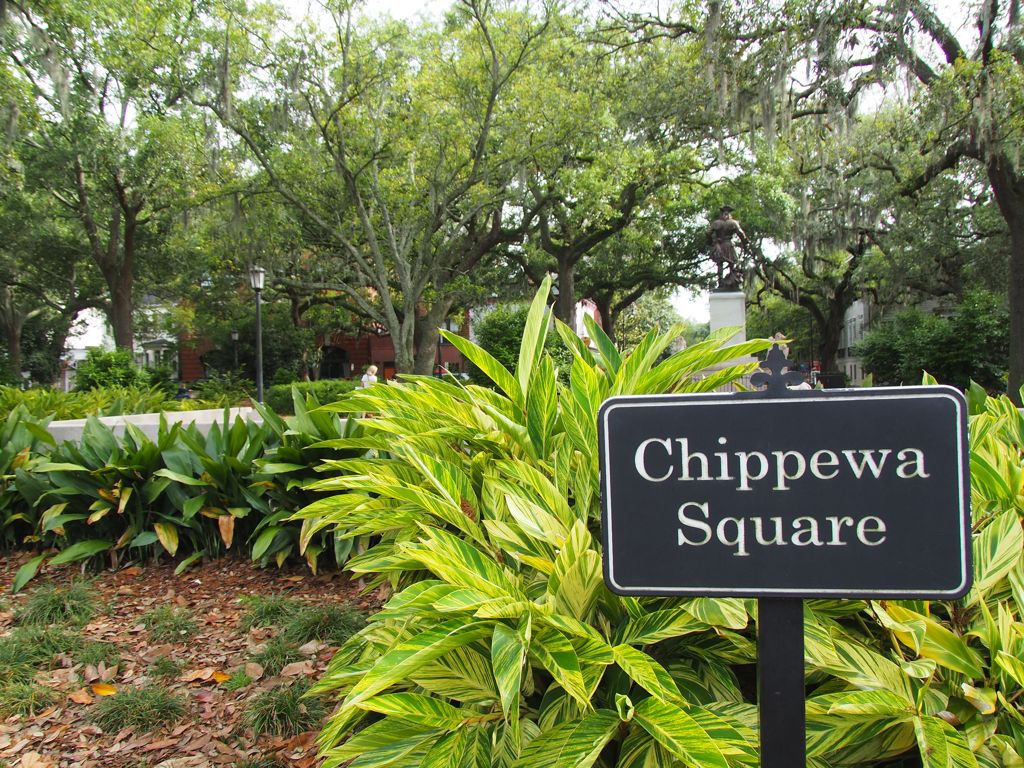 - Chippewa Square, le fameux square où a été tourné Forrest Gump (l’emplacement du banc est au croisement de Hull St. et Bull St.). On y trouve aussi The Historic Savannah Theatre, le plus vieux théâtre toujours en activité aux USA, et la First Baptist Church, la plus vieille église de Savannah