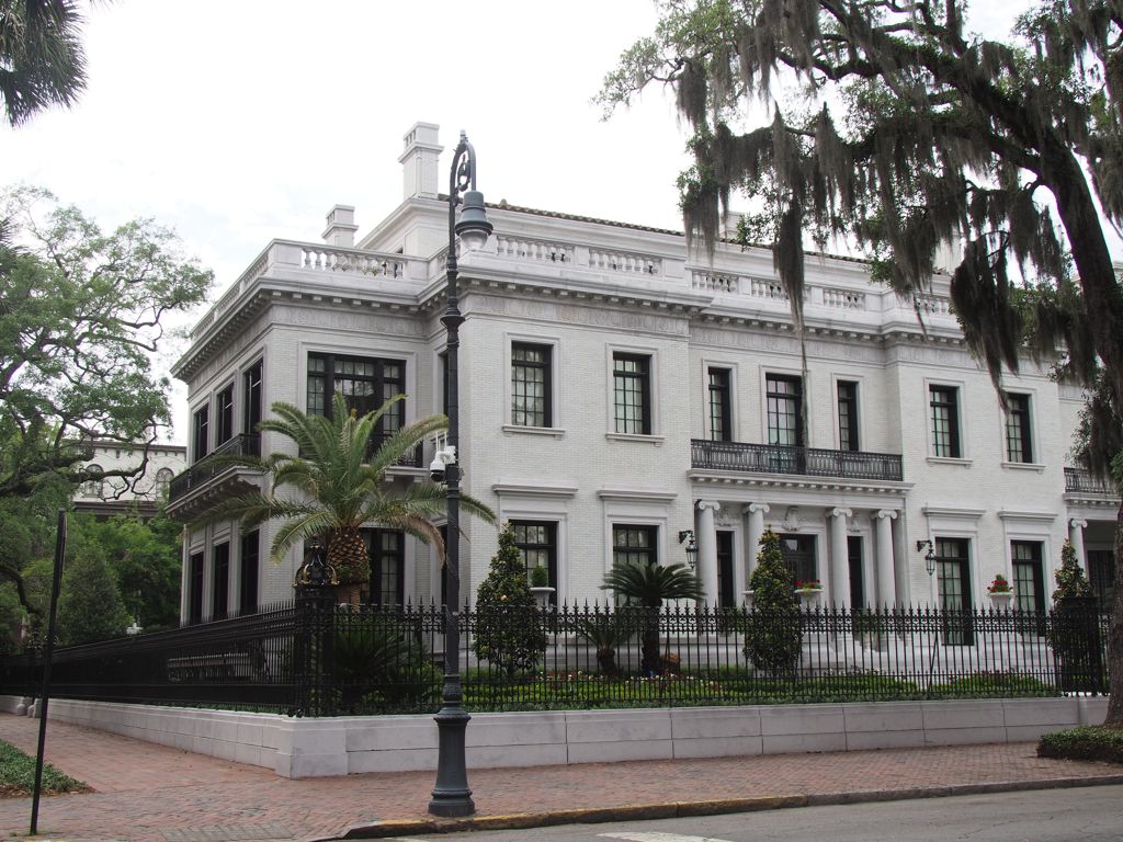 - Monterey Square et la fameuse Mercer Williams House, la maison de Jim Williams, le personnage au cœur de l’intrigue dans le livre/film « Midnight in the Garden of Good and Evil« . Il est d’ailleurs possible de la visiter sur réservation.