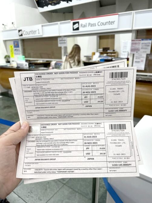 A votre arrivée au Japon, vous devez aller échanger votre bon contre votre vrai JR Pass dans un des bureaux JR où l’échange est possible (la liste se trouvera sur votre bon). Je vous déconseille de le faire à l’aéroport de Narita, nous y avons vu des files gigantesques. Typiquement, il y a moins de file en gare, mais avec la popularité croissante du Japon ces dernières années, ce n’est plus une garantie :