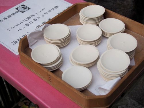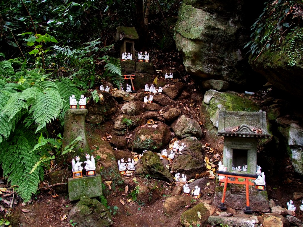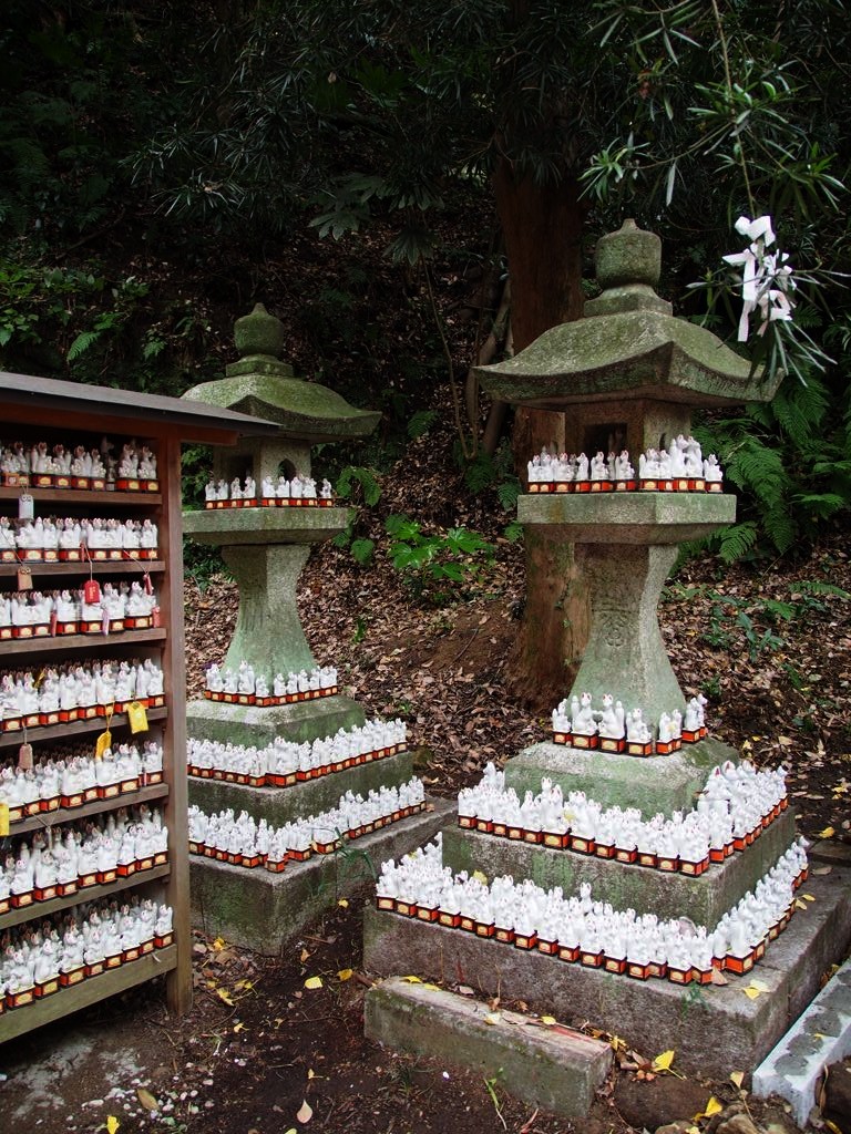 On continue ensuite, en montant, en direction du parc de Kamakura où se trouve le sanctuaire de Kuzuharaoka-jinja. Il y a un petit temple où on peut pratiquer le « ma-saru-ishi » = jeter et briser un petit plat sur une pierre pour se libérer de toutes les influences négatives dans sa vie… il ne fait pas me le dire deux fois !