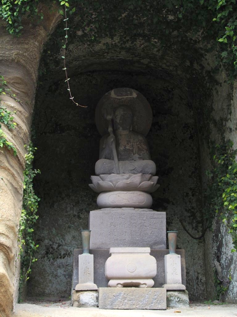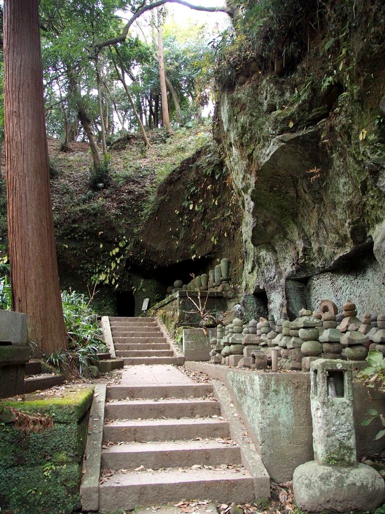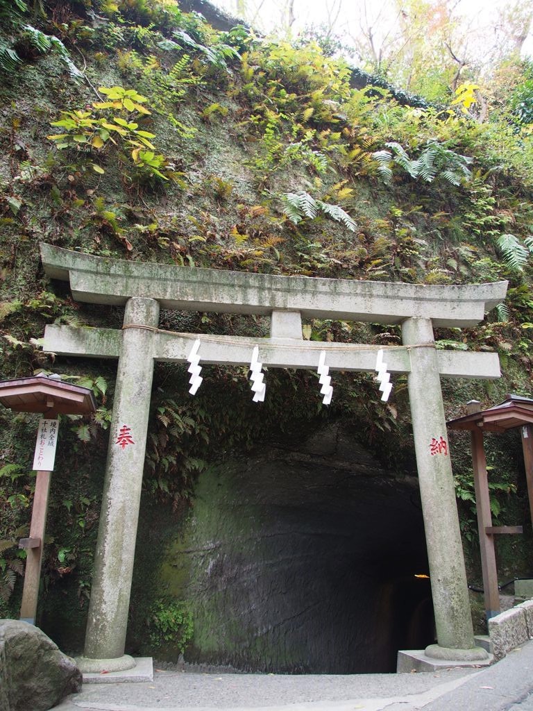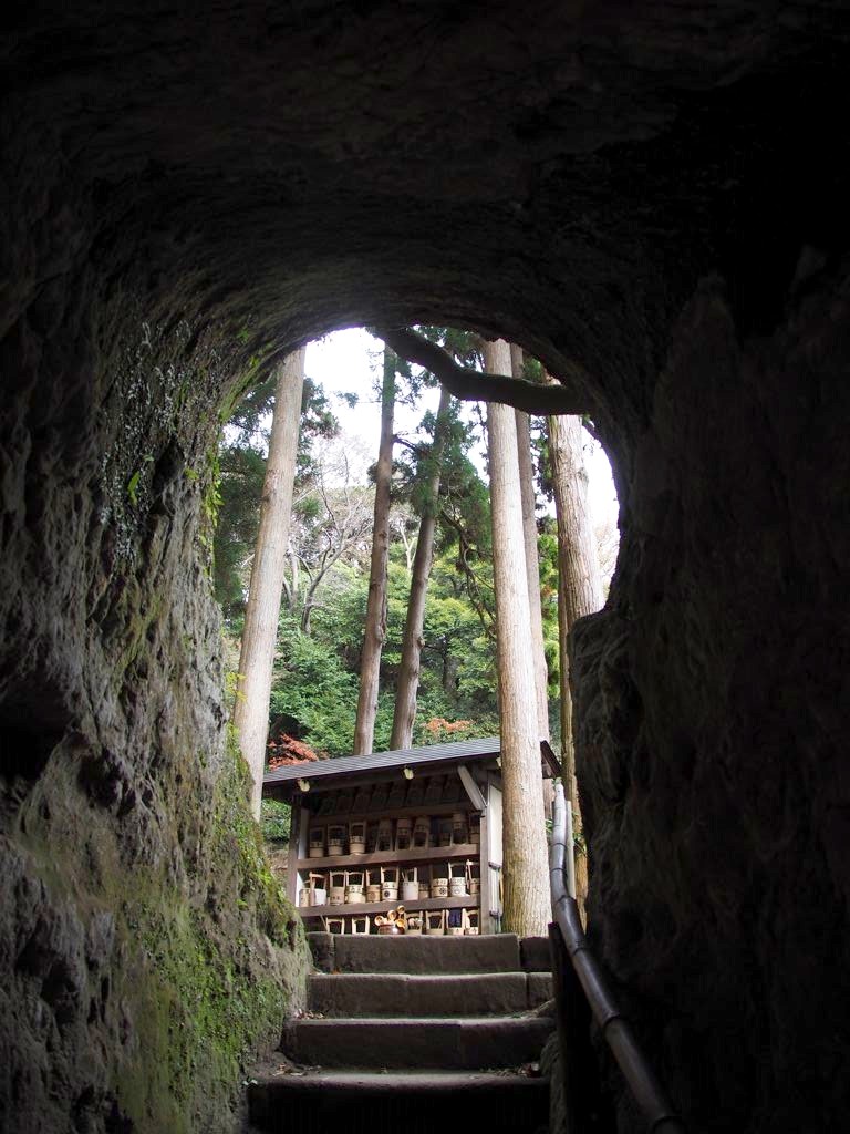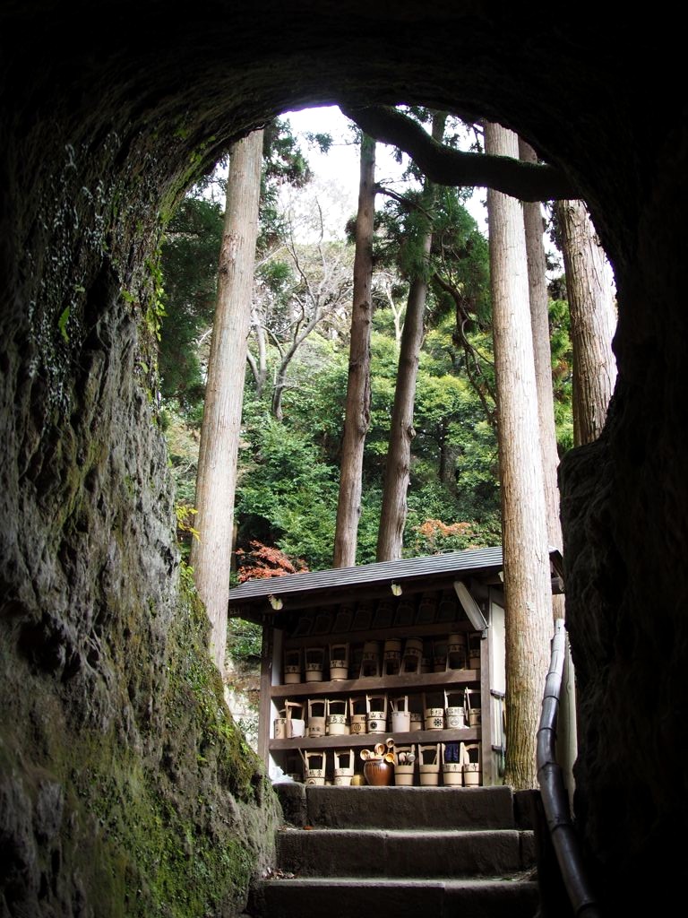 Après avoir fait un petit tour jusqu’au parc de Genjiyama (pas très utile à part pour voir la statue ci-dessus), j’ai visité le sanctuaire de Zeniarai Benten… Comme je vous le disais, il est assez difficile à trouver car son entrée est un tunnel, en plein tournant : on ne le voit qu’une fois devant.