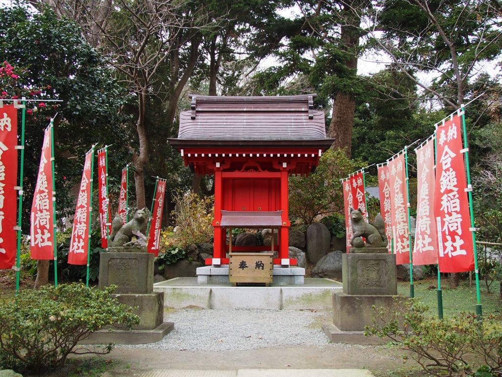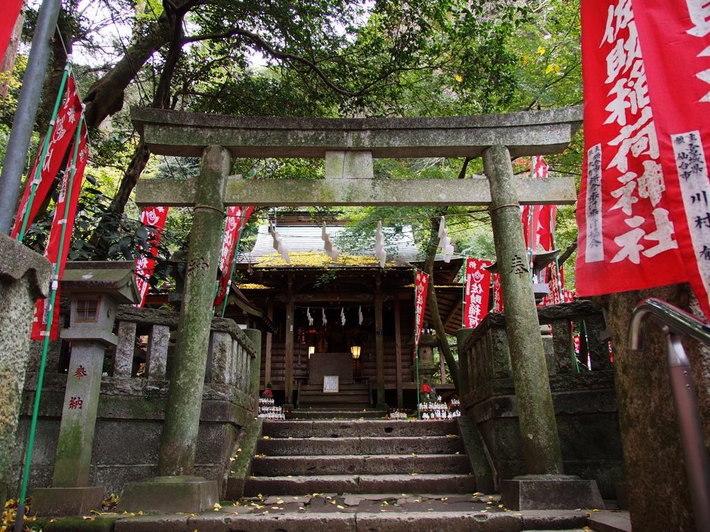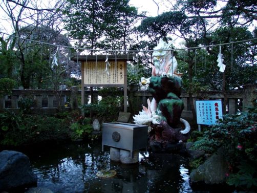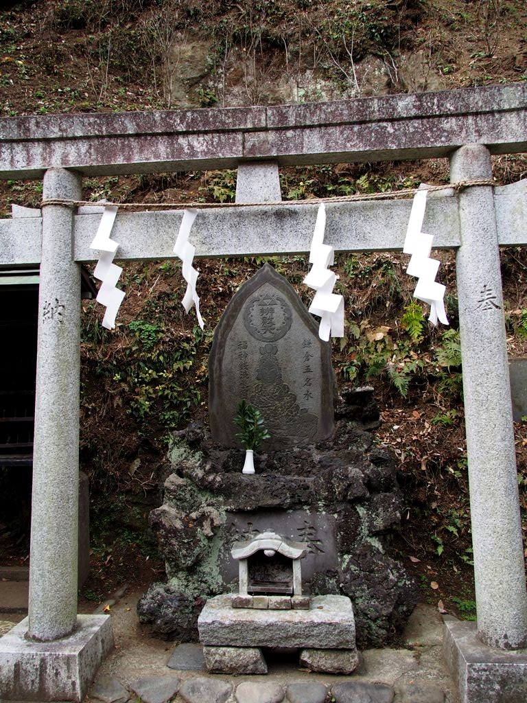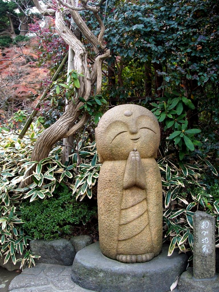 Après avoir fait un petit tour jusqu’au parc de Genjiyama (pas très utile à part pour voir la statue ci-dessus), j’ai visité le sanctuaire de Zeniarai Benten… Comme je vous le disais, il est assez difficile à trouver car son entrée est un tunnel, en plein tournant : on ne le voit qu’une fois devant.