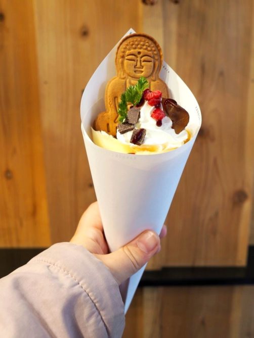Ensuite, j’avais repéré un petit café hipster Kannon Coffee Kamakura, qui fait les crêpes les plus Instagrammables du monde, qu’on peut notamment décorer avec un biscuit trop kawaii en forme de Bouddha ! Heureusement, en plus d’être beau c’était également très bon (les saveurs changent en fonction des saisons).