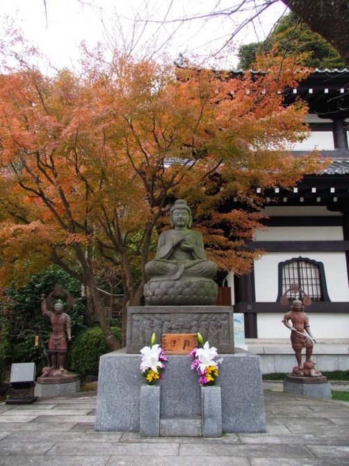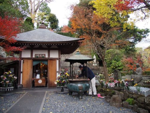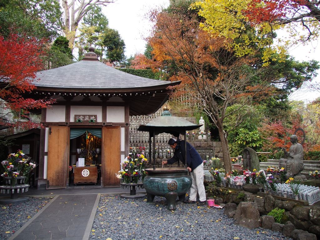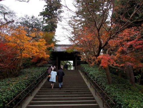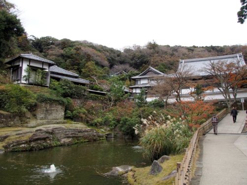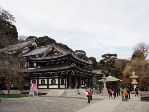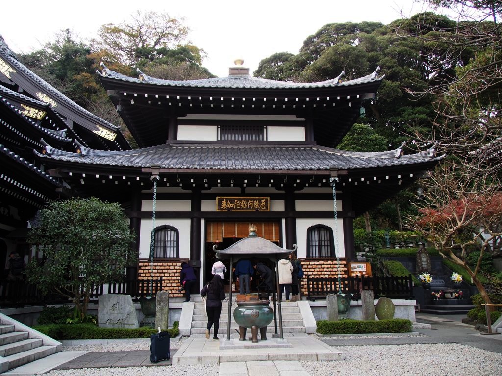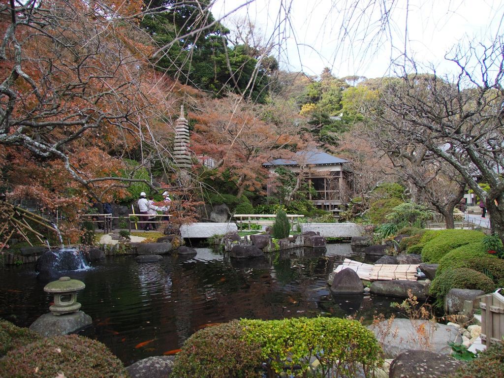 Juste à côté de la petite gare se trouve le temple de Engaku-ji (payant), un des temples zens les plus importants de la région. Le complexe du temps est assez grand, on y trouve plusieurs petits temples et pavillons à l’intérieur. Apparemment, ce temple est particulièrement beau en février pendant la période de floraison des abricotiers. Mais en décembre, les couleurs de l’automne sont encore splendides ici !