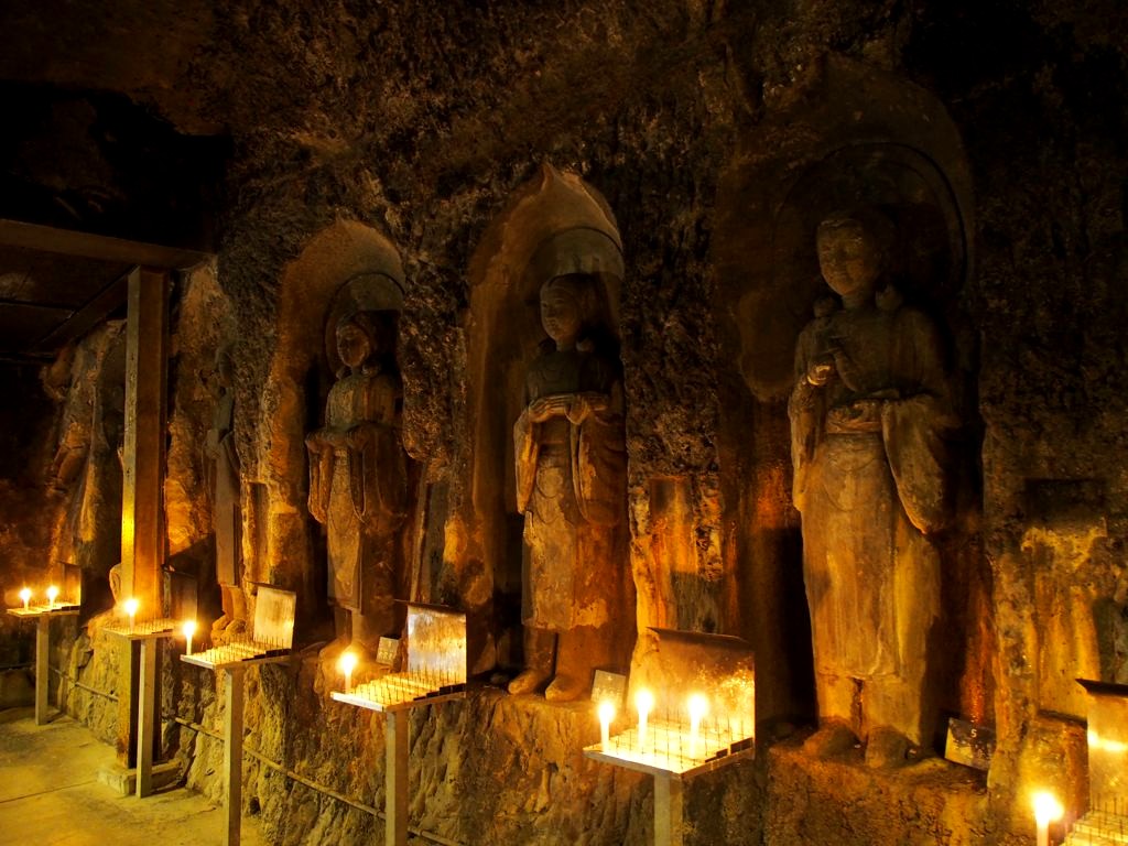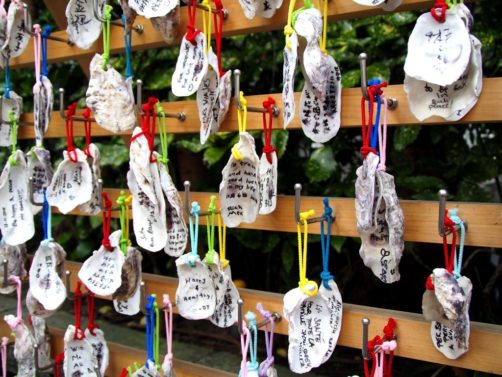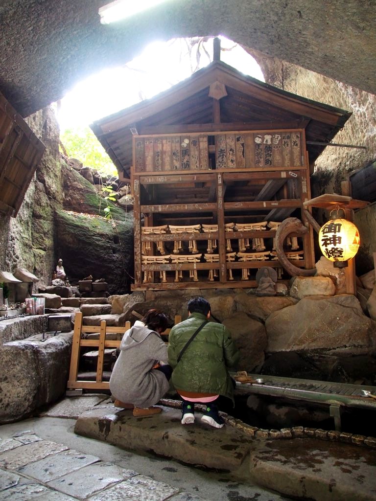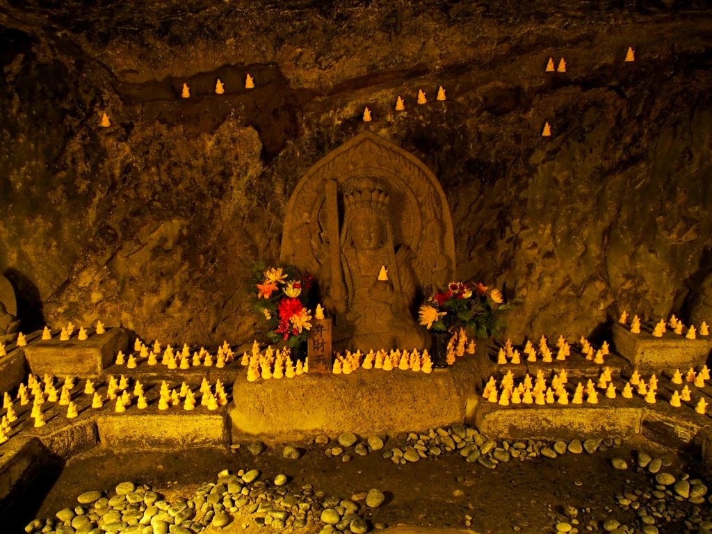 Petite particularité, les ema de ce temples sont… des huîtres ! N’oublions pas que nous nous trouvons dans un village de pêcheurs. L’endroit le plus magique du temple reste cependant la grotte Benten-Kutsu, avec un réseau de salles creusées dans la roche, à l’atmosphère très mystique !