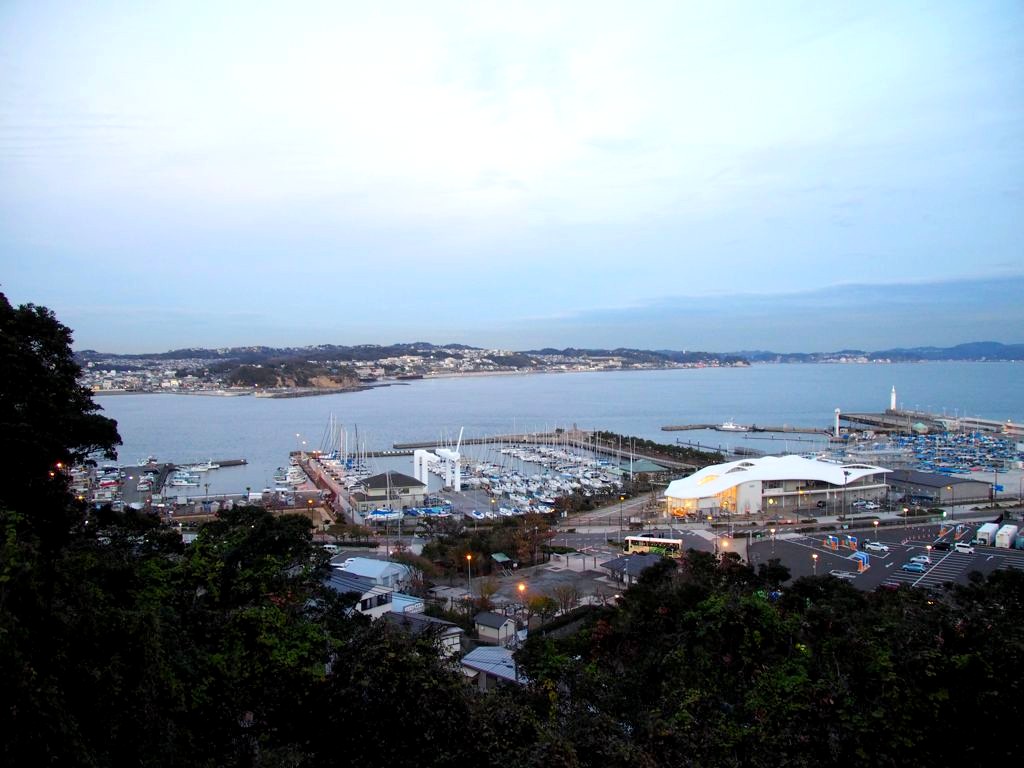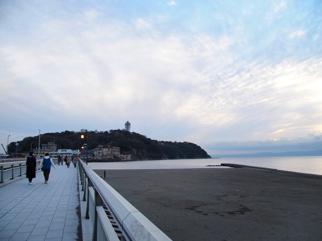 Depuis la gare d’Enoshima, on traverse à pied le petit isthme reliant Enoshima au continent. La balade au coucher du soleil jusqu’au sommet de la presqu’île, où se trouvent plusieurs petits temples, était très sympa. Il est possible de prendre quelques escalators pour faciliter la montée.