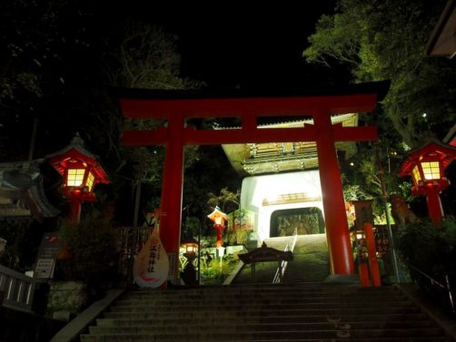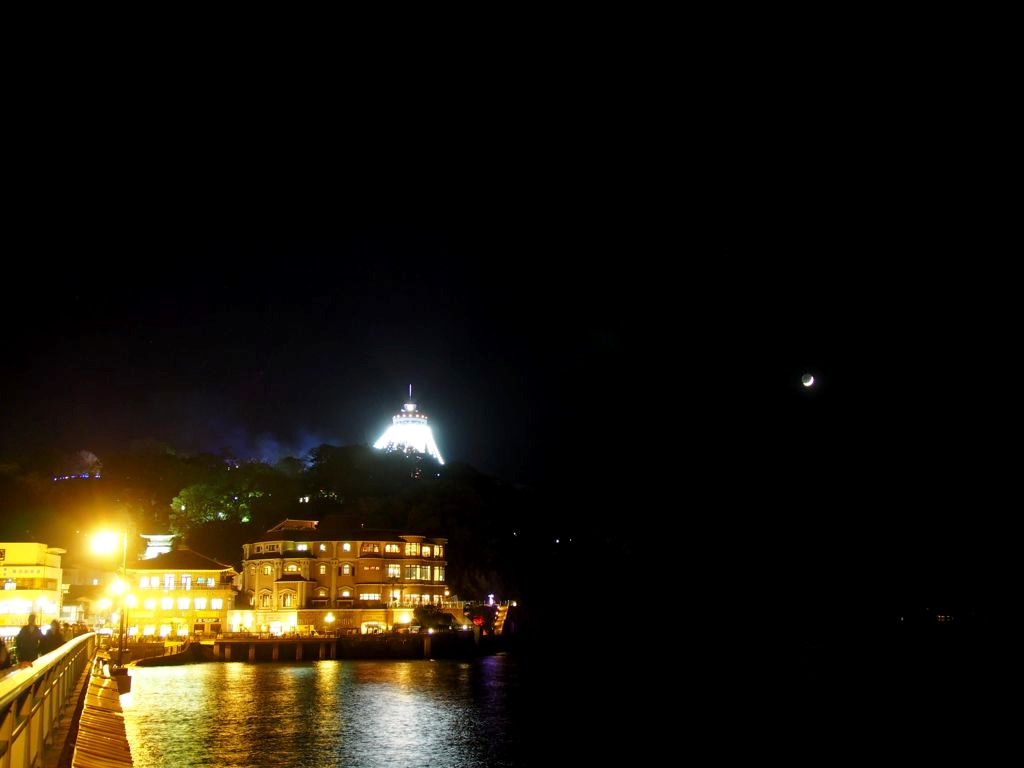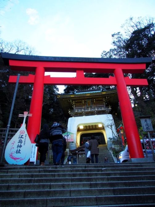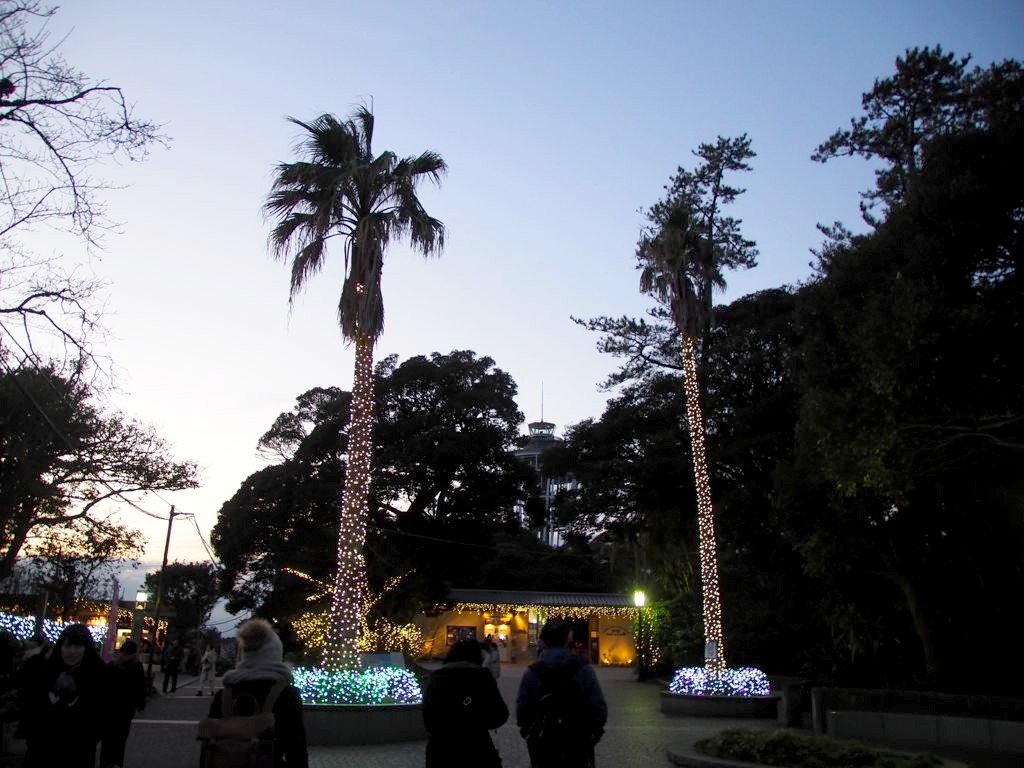 Les illuminations d’Enoshima, une fois la nuit tombée, sont splendides. On a manqué de temps pour découvrir au mieux Enoshima, nous n’avons notamment pas eu le temps de visiter le phare d’Enoshima ou encore la grotte de Enoshima Iwaya. Ca doit valoir le coup de passer la nuit sur l’île, qui possède notamment un ryokan qui a l’air splendide (avec notamment des piscines dans la roche et un petit côté Art Nouveau, voir les photos ici). C’est sûr, la prochaine fois, j’essaie de passer la nuit là-bas !