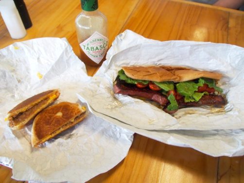 Pour un lunch rapide, un des endroits les plus populaires dans le centre de Lafayette, c’est Johnson’s Boucanière, une petite cabane qui prépare notamment de copieux sandwichs au boudin, une des spacialités de la région (qui n’a rien à voir avec notre boudin).