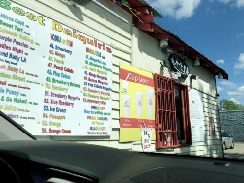 On a aussi testé un concept WTF mais très populaire en Louisiane, le drive-thru daiquiri. Oui, vous ne rêvez pas, il s’agit de drive-thru où l’on achète exclusivement des cocktails daiquiri. Conduire et boire aux USA, comment est-ce possible ? En réalité, l’opercule de la paille du cocktail doit rester fermé pour que ce soit légal de le transporter en voiture (aux USA il est interdit d’avoir une boisson alcoolisée ouverte dans la voiture, même pour les passagers). Donc en gros on a dû rentrer à l’hôtel pour le boire !
