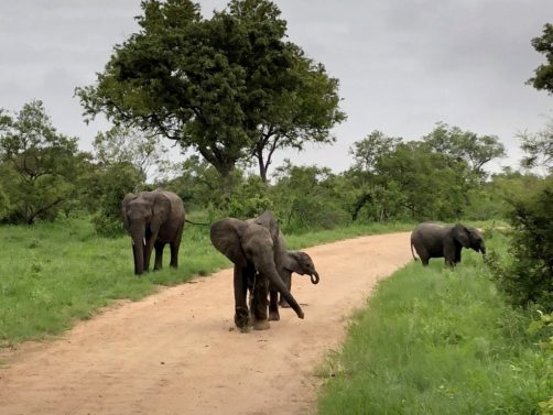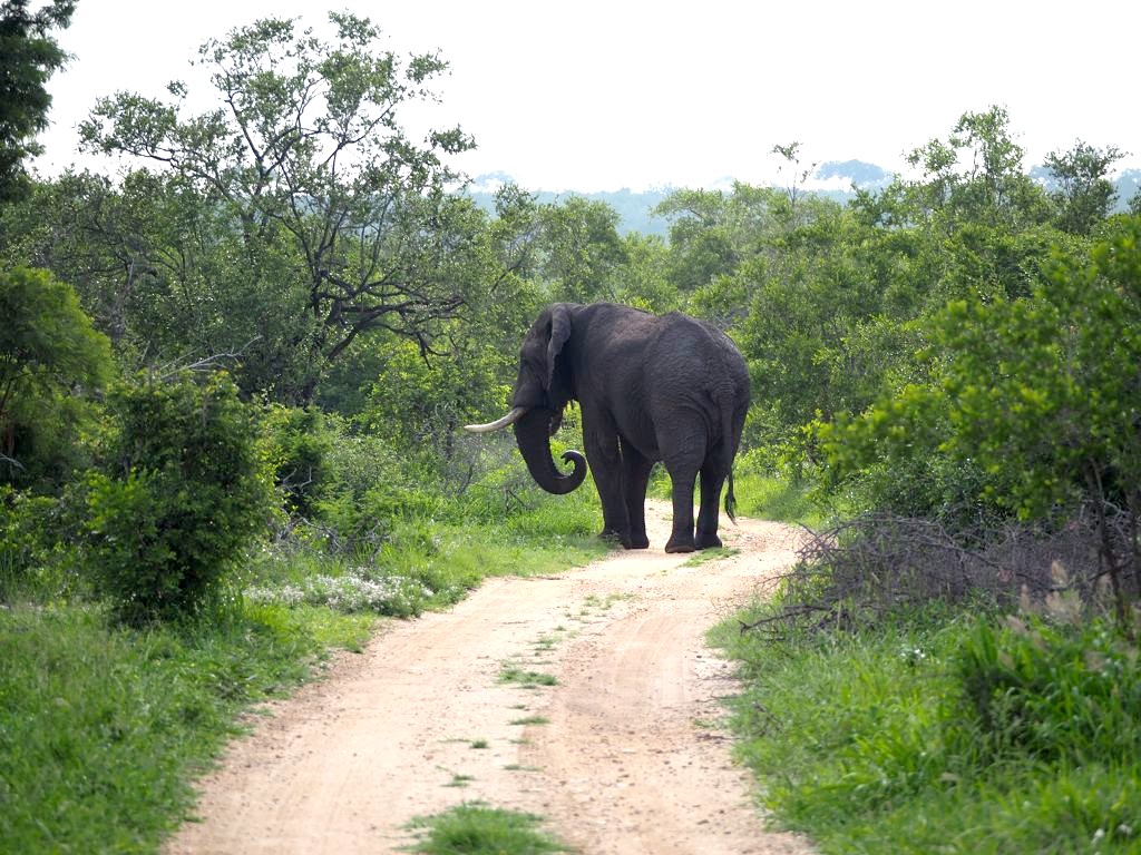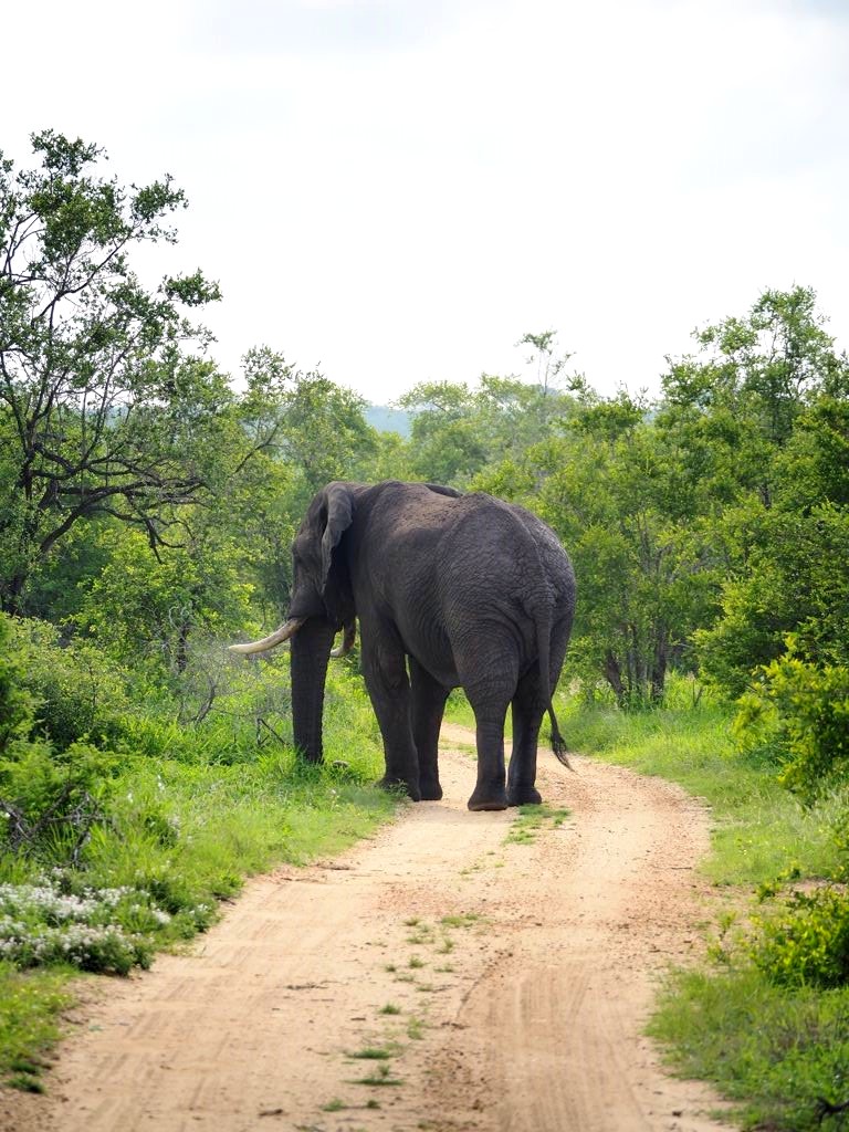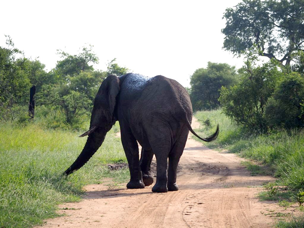 Ça nous est arrivés plusieurs fois, avec Themba, de finalement faire demi-tour car un éléphant ne voulait pas bouger de la route.