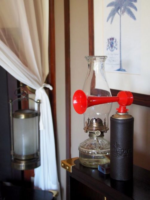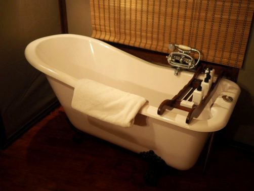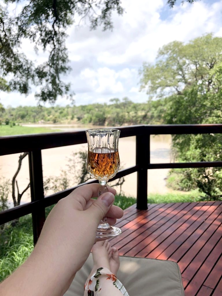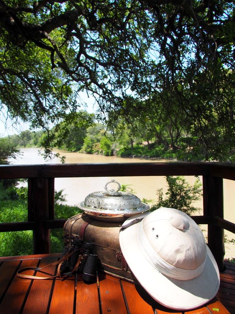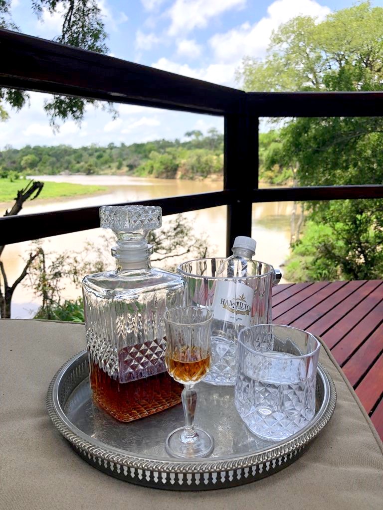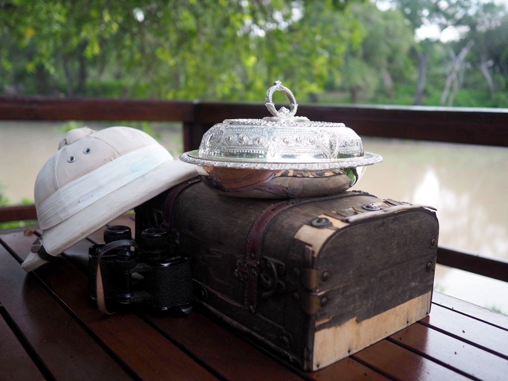 Mais la meilleure partie reste la salle de bain, avec sa splendide baignoire sur pied avec vue sur la rivière (d’où on peut observer les animaux avec un peu de chance !) et la douche extérieure ! Tout a été pensé jusque dans les moindres détails pour rappeler cette grande époque du safari, du « buzzer » d’urgence vintage aux contes sur les animaux de la savane déposés sur le lit lors du service du soir, jusqu’à la flasque de Cherry dans la chambre !