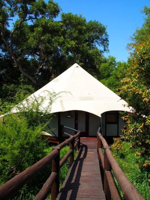 Puisque j’aime ces expériences qui donnent un petit goût d’une époque révolue, j’avais totalement craqué sur Booking.com pour le Hamilton’s Tented Camp, ce camp de luxe à l’atmosphère d’autrefois qui se trouve dans une petite concession au cœur du Kruger, Mluwati (aussi appelée Imbali). On y trouve seulement trois petites lodges gérées par le même propriétaire.