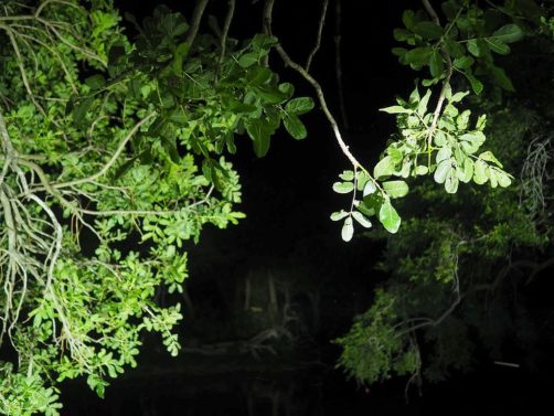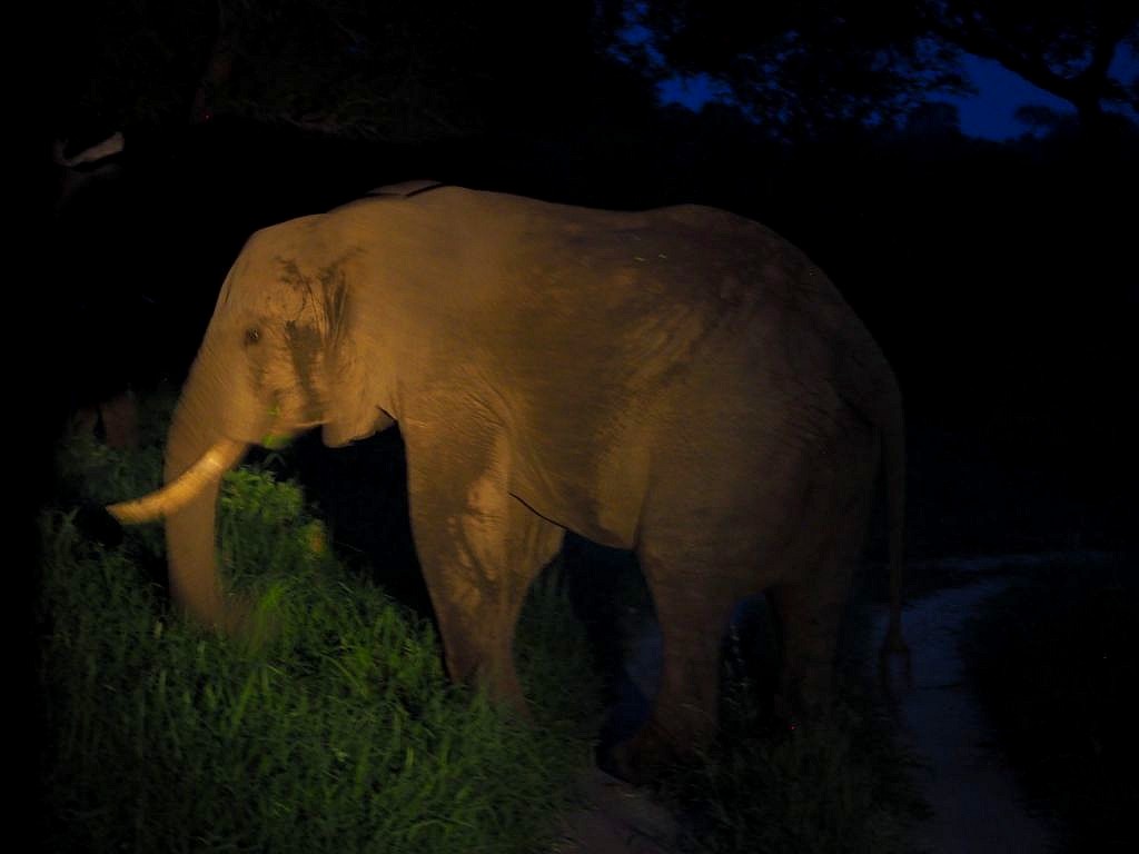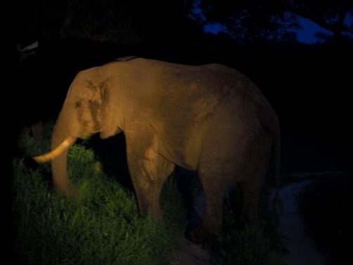 Nous avons ensuite repris notre 4×4 ouvert pour continuer le safari dans le noir, à la lampe torche, pour rentrer au lodge. Voir les animaux de nuit éclairés de la sorte, notamment des éléphants, était vraiment impressionnants !