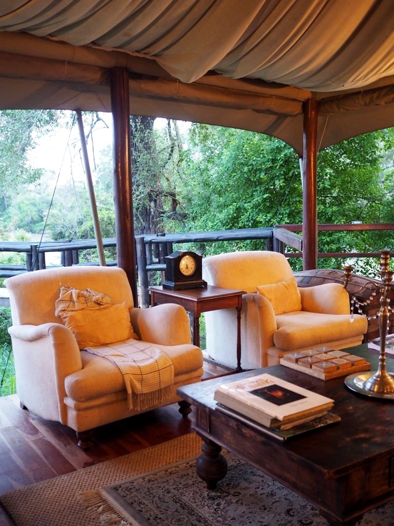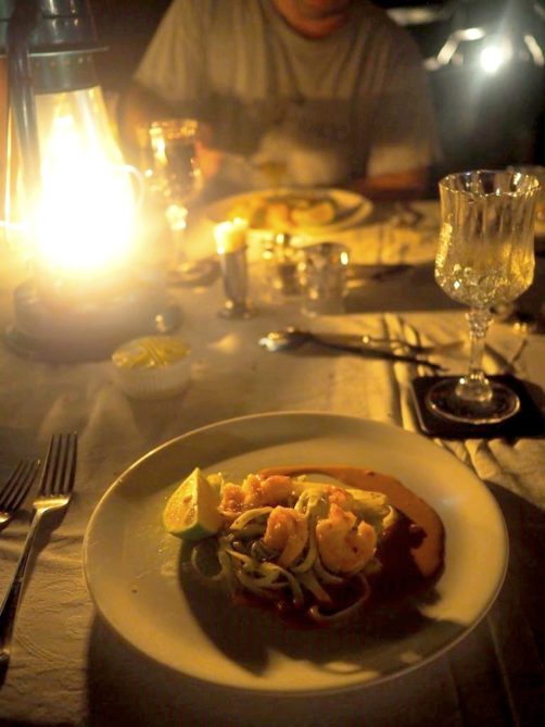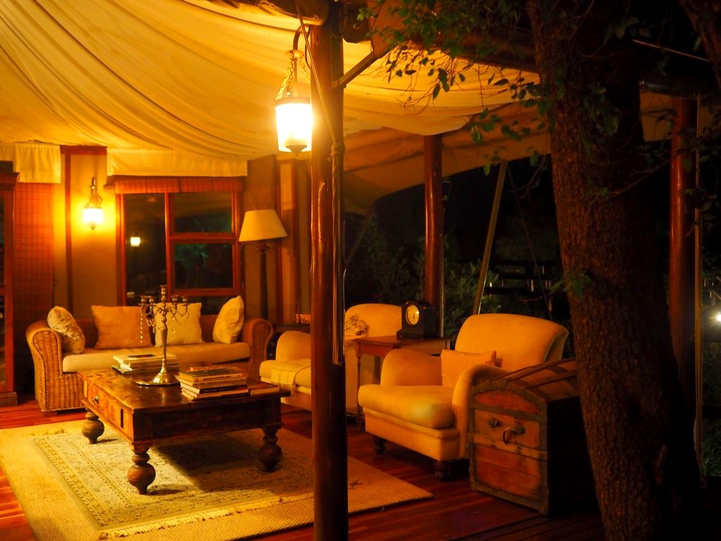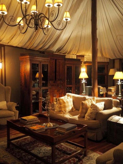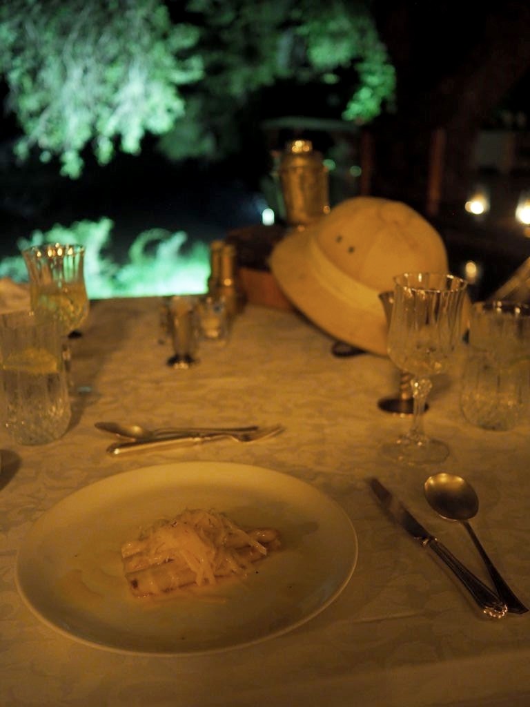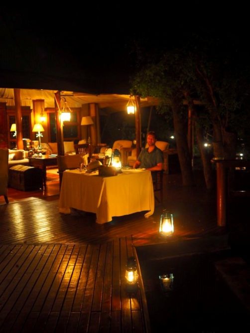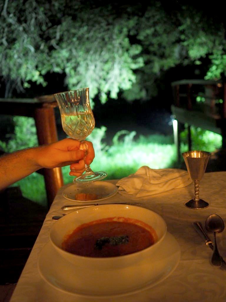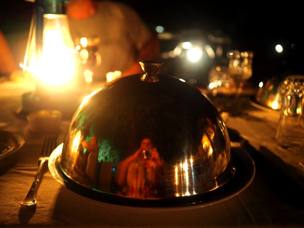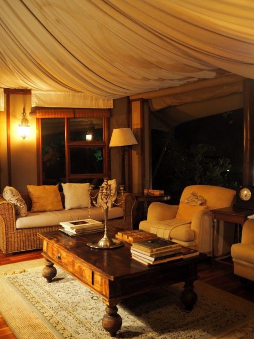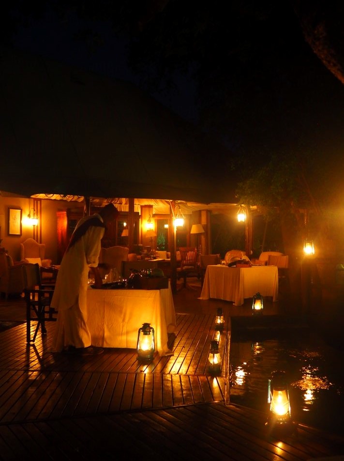 Au retour de safari, nous sommes accueillis avec des lampes à huile partout, des petites serviettes rafraîchissantes et un verre de sherry (ils ont vraiment un trip avec ça ici, pour mon plus grand bonheur !).