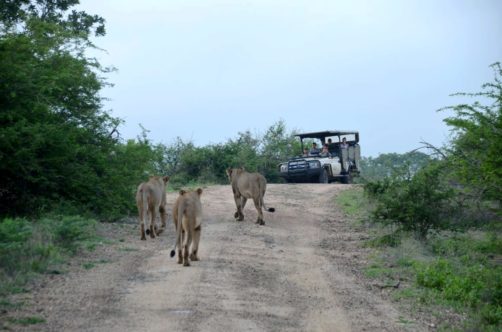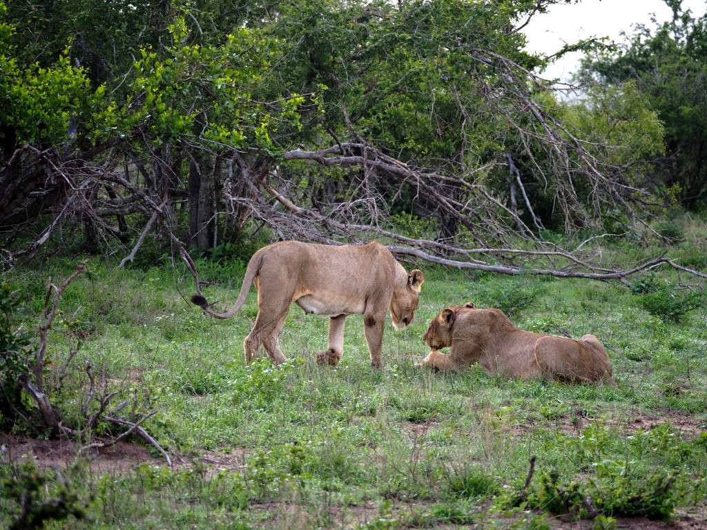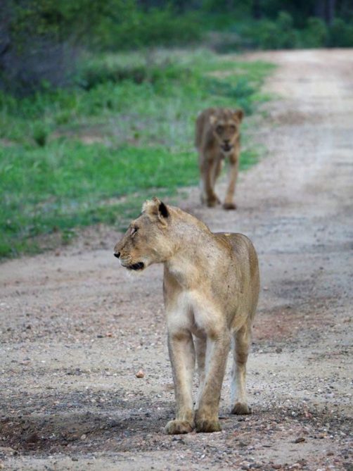 Dans les concessions et réserves privées par contre, les guides (game rangers) peuvent quitter la route dans leurs 4×4 et suivre les animaux d’un peu plus près. Plus la concession ou réserve est grande, au mieux c’est, puisque dès que l’animal repasse en zone publique, fini de le pister… On a pu en faire les frais avec un groupe de lionnes qui sont apparues juste à la frontière entre la zone privée et la zone publique !