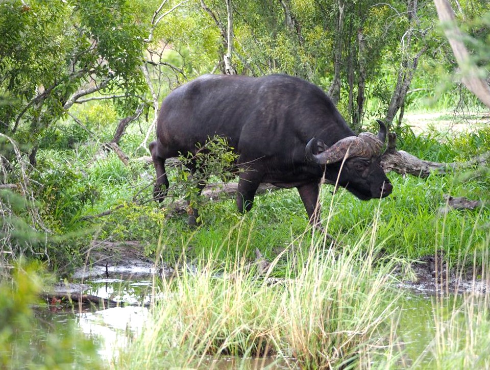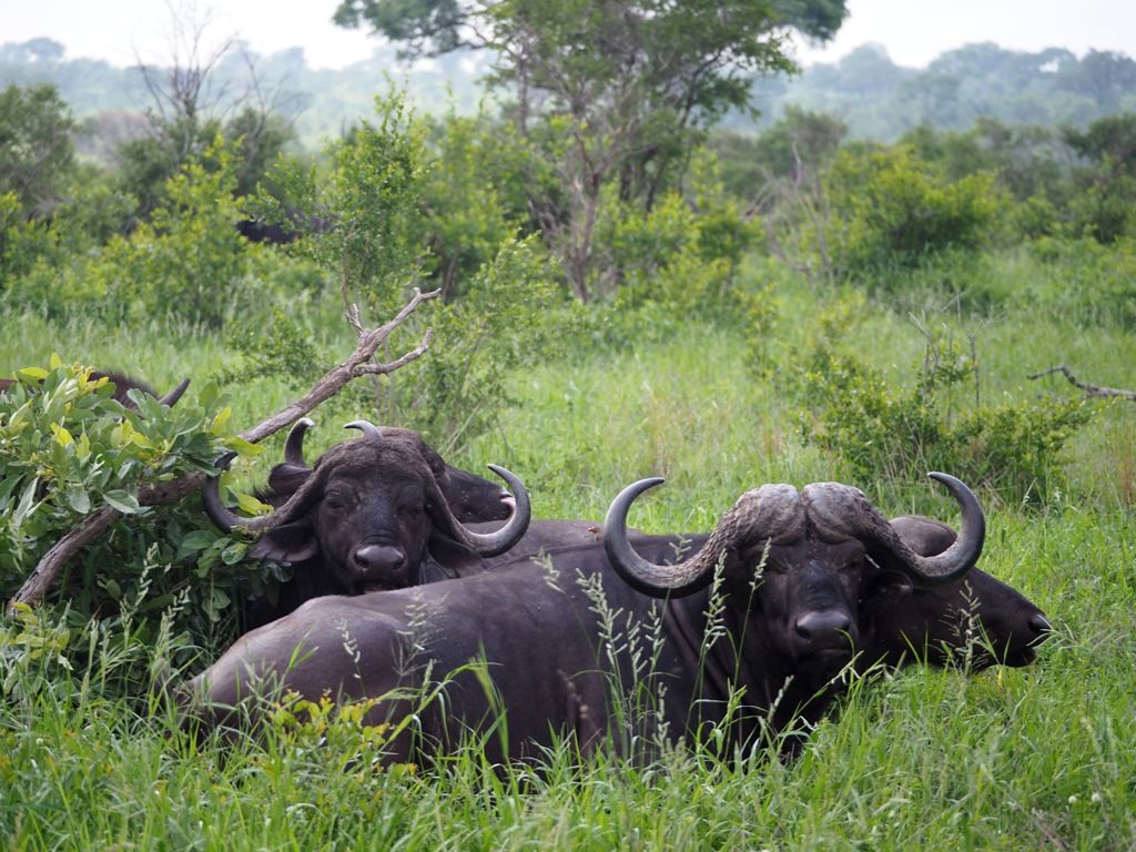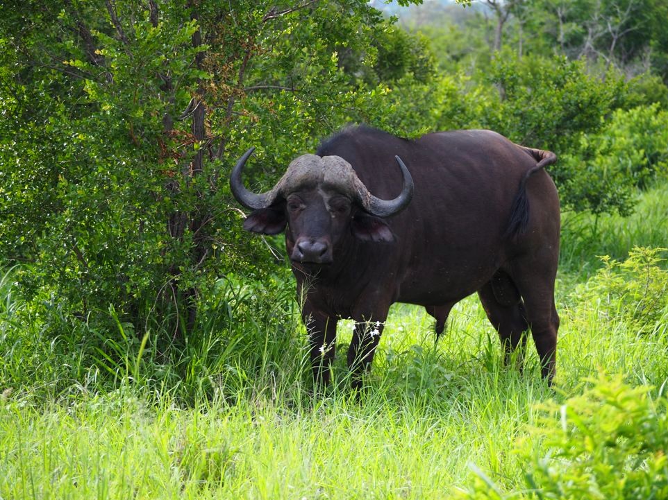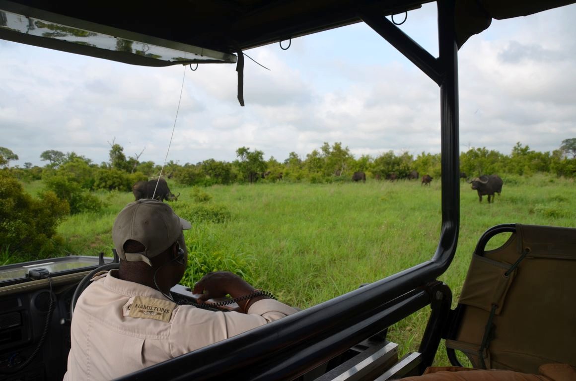 Nous étions en fait arrivés au Kruger la veille au soir et avions passé la nuit dans un petit lodge en bordure du parc, près de l’entrée Paul Kruger Gate. Le matin du premier jour, nous avons donc conduit avec notre voiture de location jusqu’au Hamilton, en passant par les zones où des animaux avaient été repérés ce jour-là (je vous parlerai plus en détails du self-drive dans mon deuxième article sur le Kruger). En même pas une heure, nous avons aperçu deux des animaux qui échappent souvent aux touristes d’un jour : le rhinocéros et le léopard, ainsi qu’un buffle. Une belle entrée en matière !