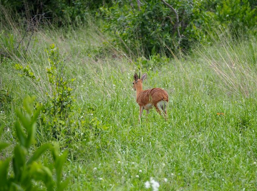 Durant ce premier game drive avec Themba, nous avons notamment vu : éléphants, nyalas, antilopes, girafes, rapaces,… (et les américains avaient vu avec Themba un guépard le matin même, dommage pour nous !).