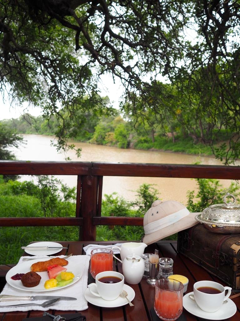 Au retour, c’est l’heure du petit-déjeuner bien mérité ! Le pur bonheur que ce petit-déjeuner à l’anglaise au milieu de la jungle. Avec un bain, puis un apéro au sherry face à la rivière, la matinée passe super vite. La sieste attendra, on a mieux à faire ici !