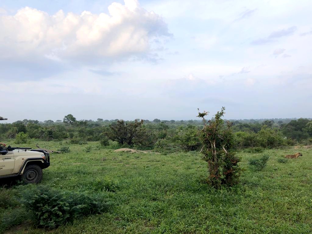 On pensait que l’on aurait plus de grosse surprise ce matin. J’avais tord… un éléphant mâle en rut (musth) nous a pourchassé (on a aussi réussi à immortaliser le moment sur une vidéo que vous pouvez toujours voir sur mon Instagram !). Le gros stress, j’ai vraiment cru qu’il allait réussir à rattraper la jeep ! Sans rire, chaque année des éléphants tuent des touristes en retournant leurs voitures et en les piétinant. Et comme vous signez une décharge en rentrant dans le parc, vous êtes laissés à vous-même en cas d’accident : ni le parc, ni vos assurances n’interviendront… Et en plein milieu du parc, il faudrait des heures avant que la première ambulance n’arrive (si quelqu’un passe par là et a du réseau pour appeler). Bref, une mort assez atroce quoi.