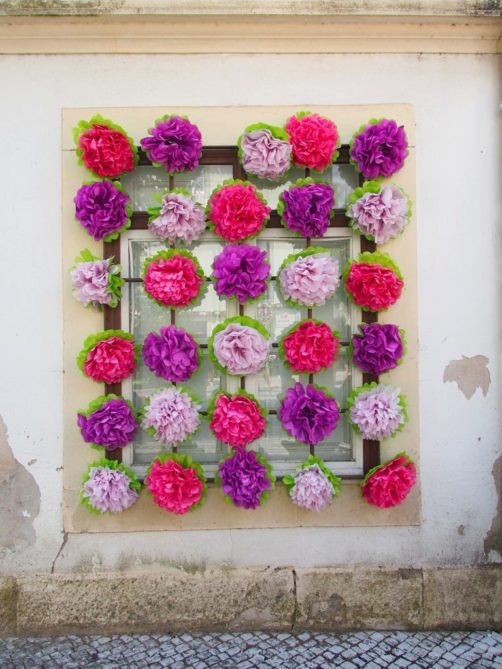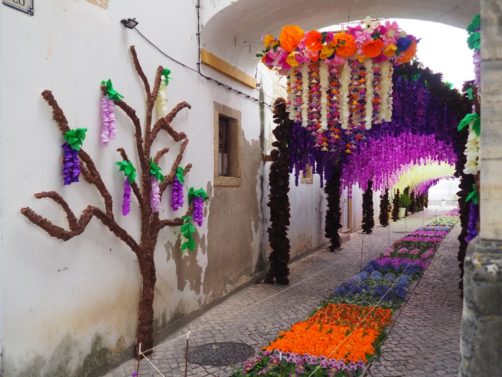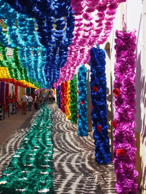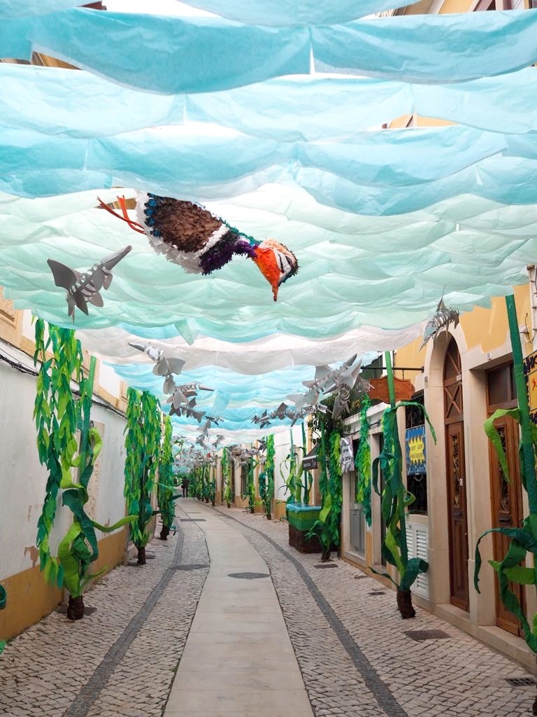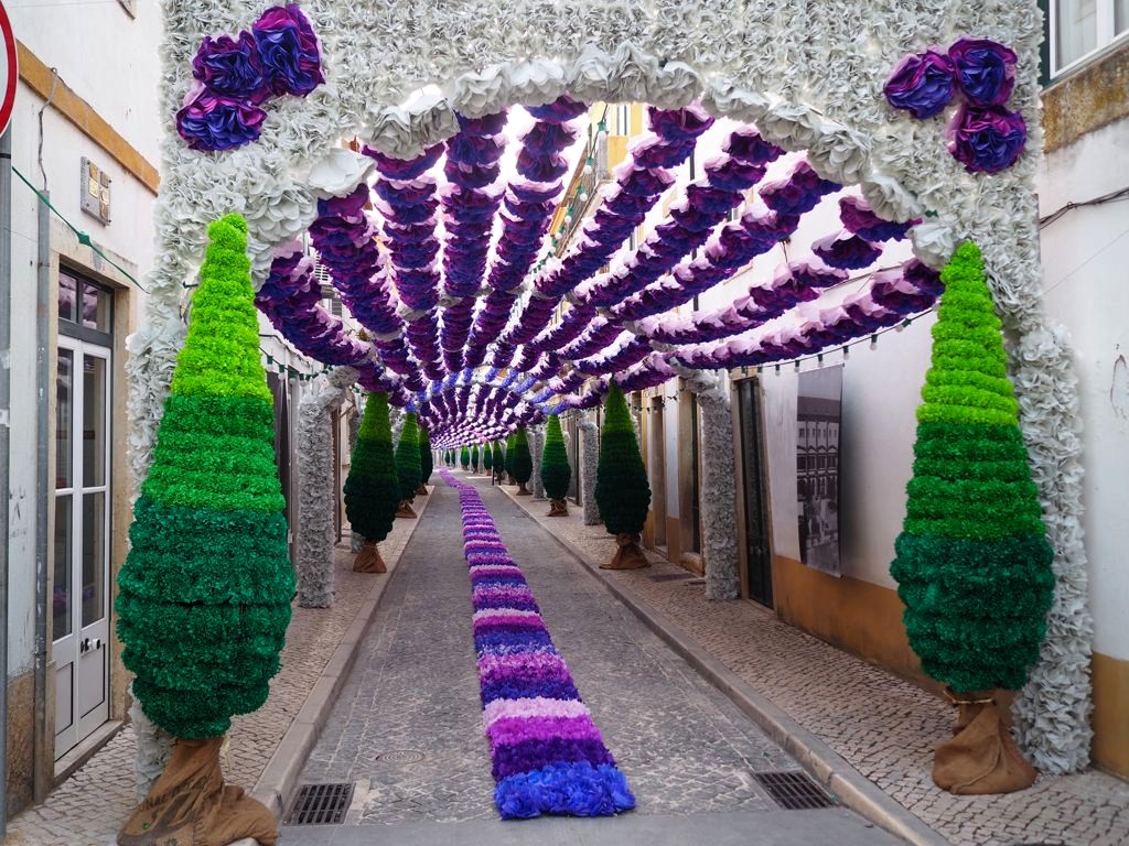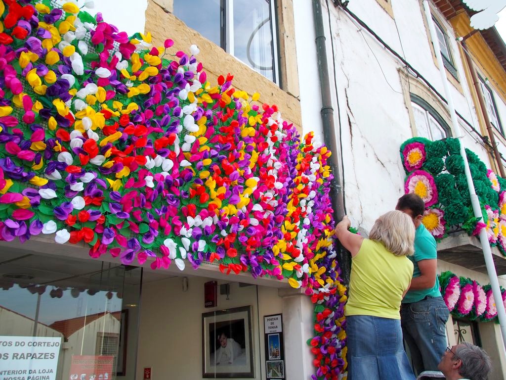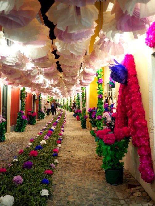 Le côté festif commence quant à lui réellement avec l’ouverture des rues décorées le jeudi à 20h. Toute la communauté de Tomar travaille ensemble pour créer les décorations des rues, réalisées entièrement en papier. C’est tout simplement magique ! Les décorations sont gardées secrètes jusqu’à l’ouverture officielle des rues et il y a une compétition entre les rues qui sont chacune décorées différemment, la plus belle rue remportant un prix. Il y avait vraiment de l’ambiance dans les rues pour l’ouverture !