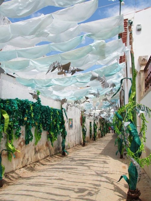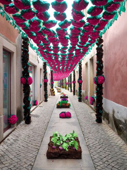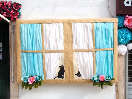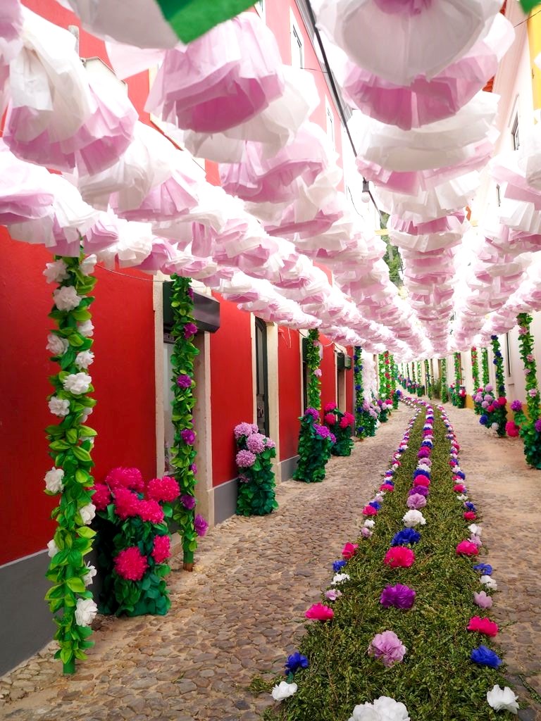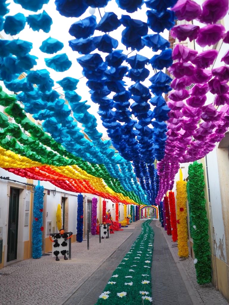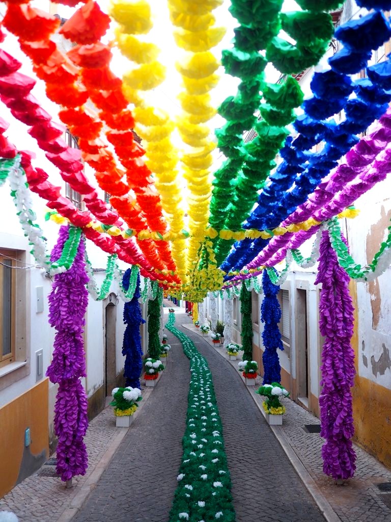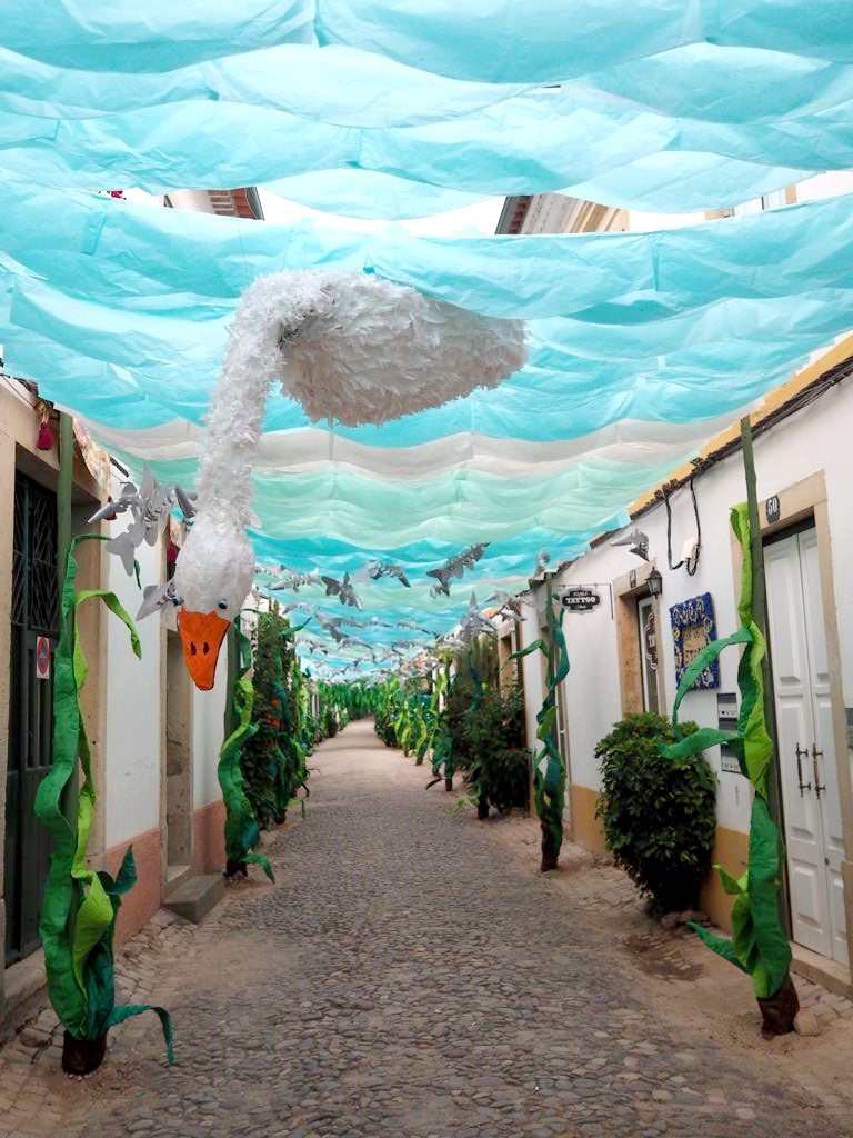 Le côté festif commence quant à lui réellement avec l’ouverture des rues décorées le jeudi à 20h. Toute la communauté de Tomar travaille ensemble pour créer les décorations des rues, réalisées entièrement en papier. C’est tout simplement magique ! Les décorations sont gardées secrètes jusqu’à l’ouverture officielle des rues et il y a une compétition entre les rues qui sont chacune décorées différemment, la plus belle rue remportant un prix. Il y avait vraiment de l’ambiance dans les rues pour l’ouverture !