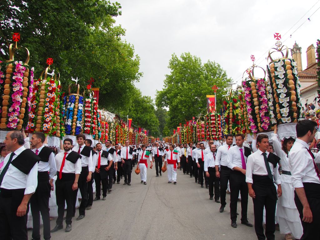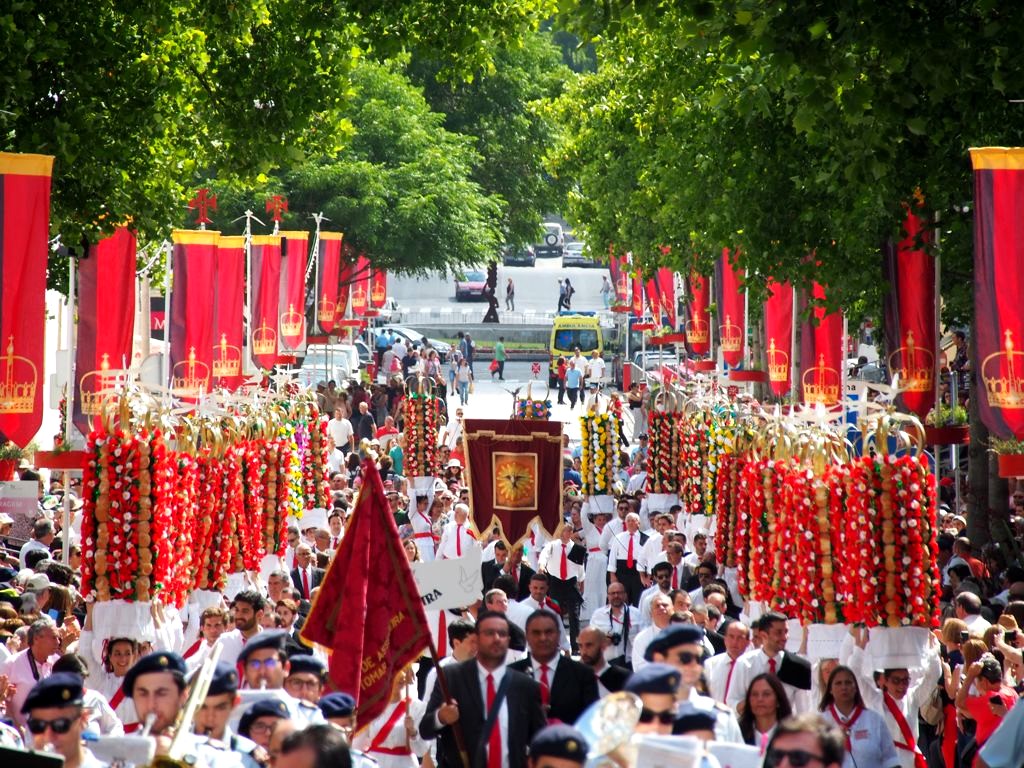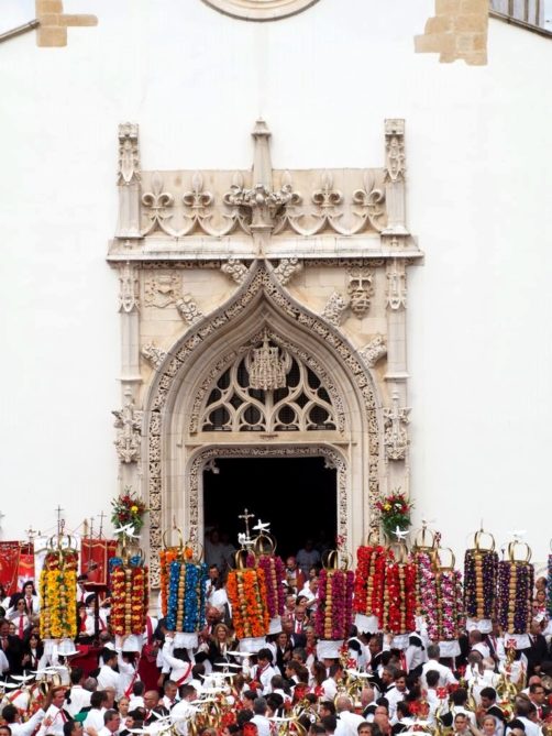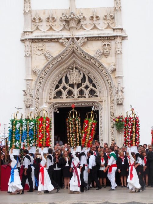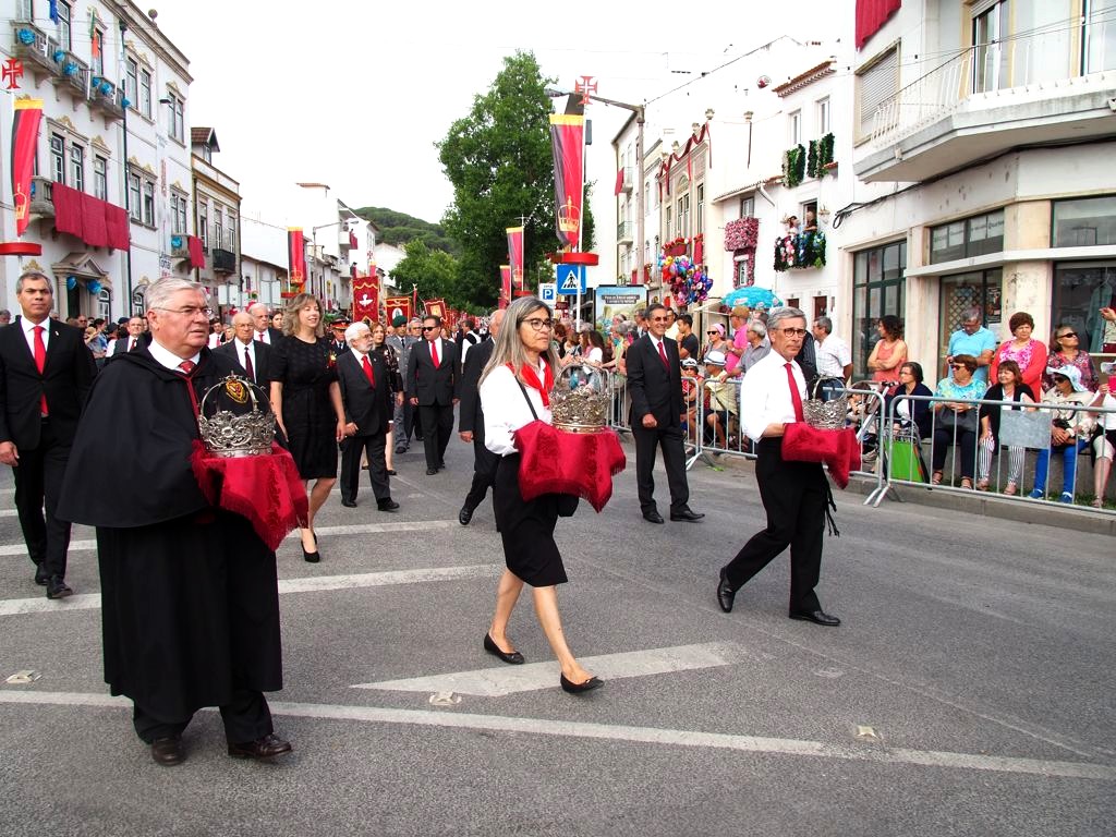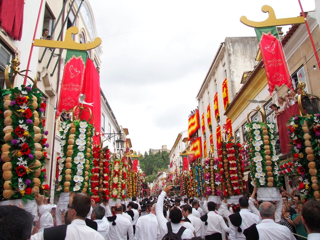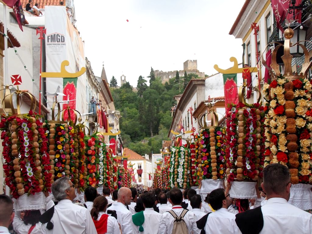Le samedi commence avec la procession des couronnes et des bannières du Saint-Esprit. Les 16 paroisses de Tomar ont chacune leur bannières et couronne.