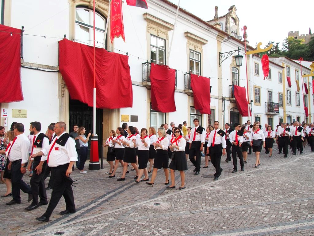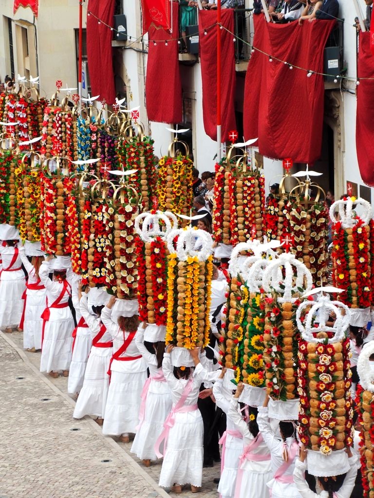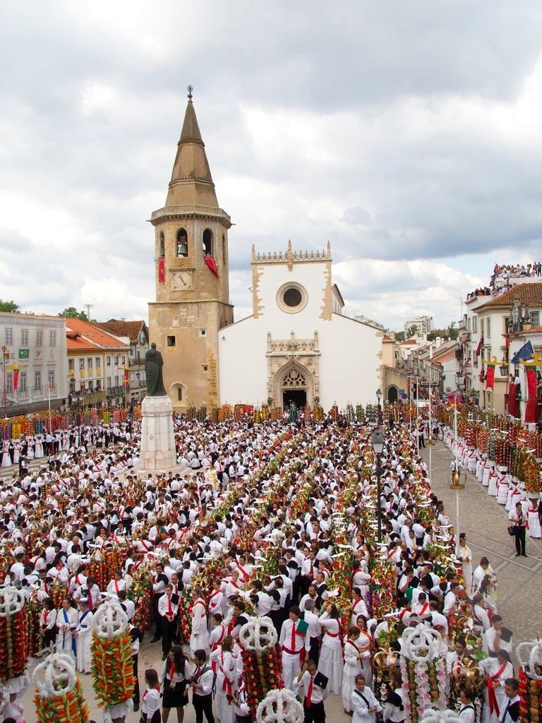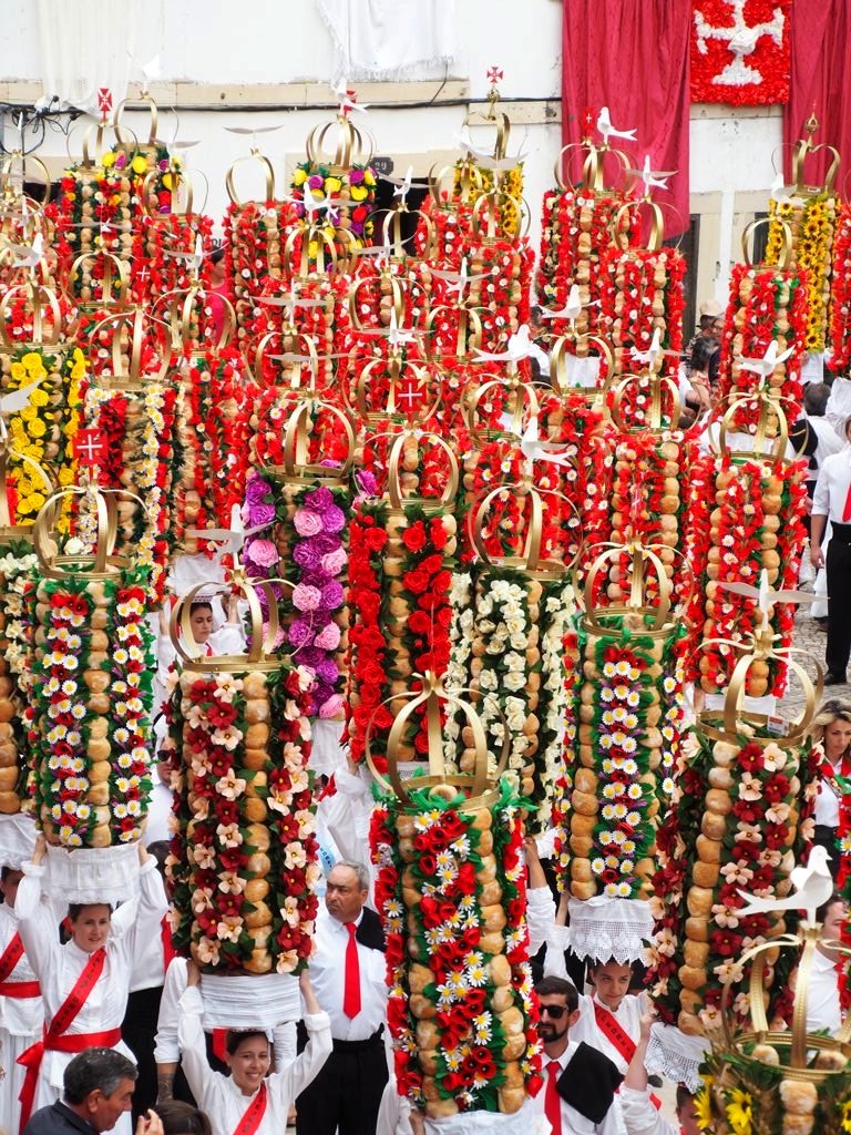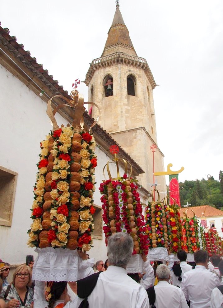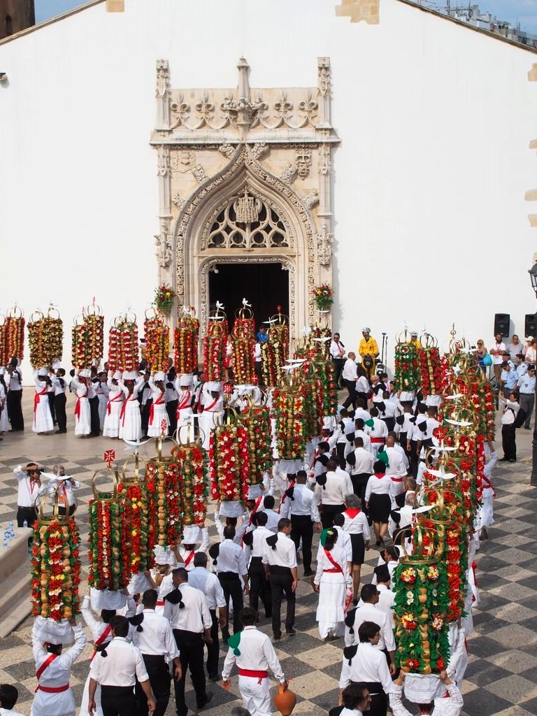 Le samedi commence avec la procession des couronnes et des bannières du Saint-Esprit. Les 16 paroisses de Tomar ont chacune leur bannières et couronne.