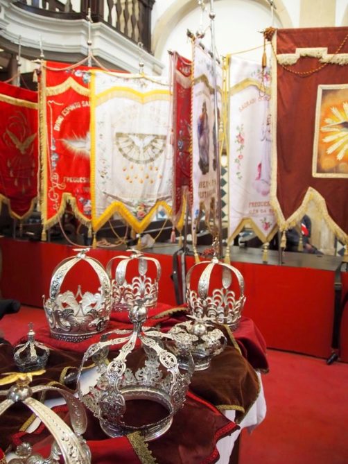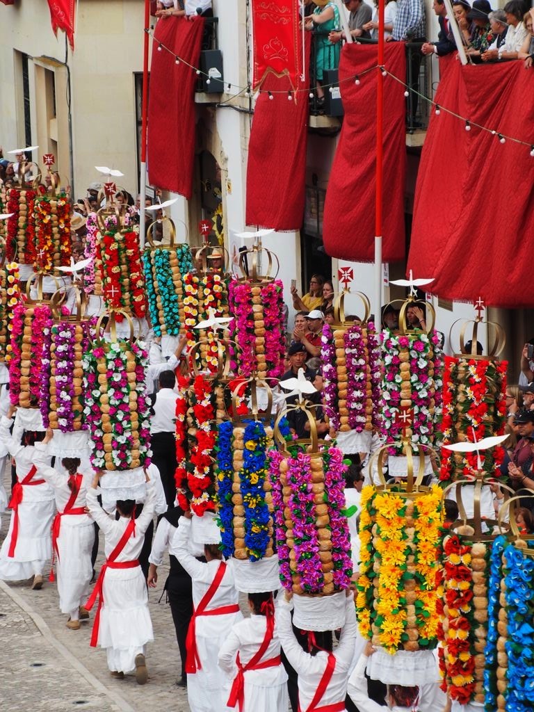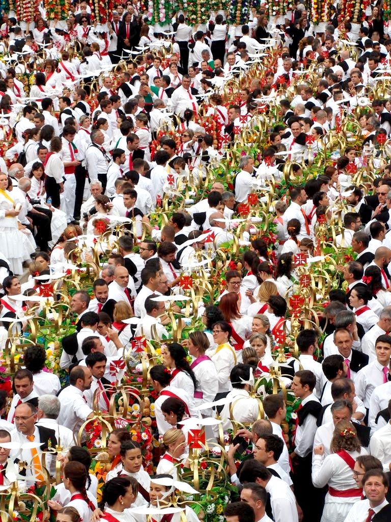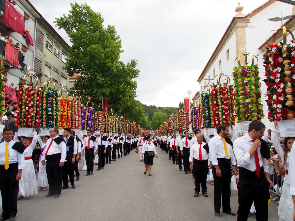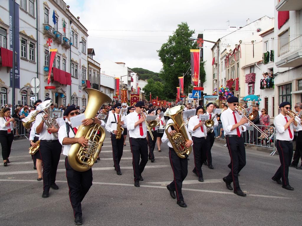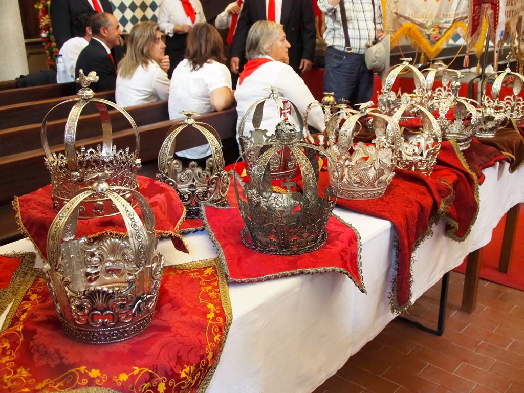 Le samedi commence avec la procession des couronnes et des bannières du Saint-Esprit. Les 16 paroisses de Tomar ont chacune leur bannières et couronne.