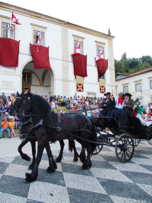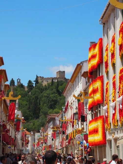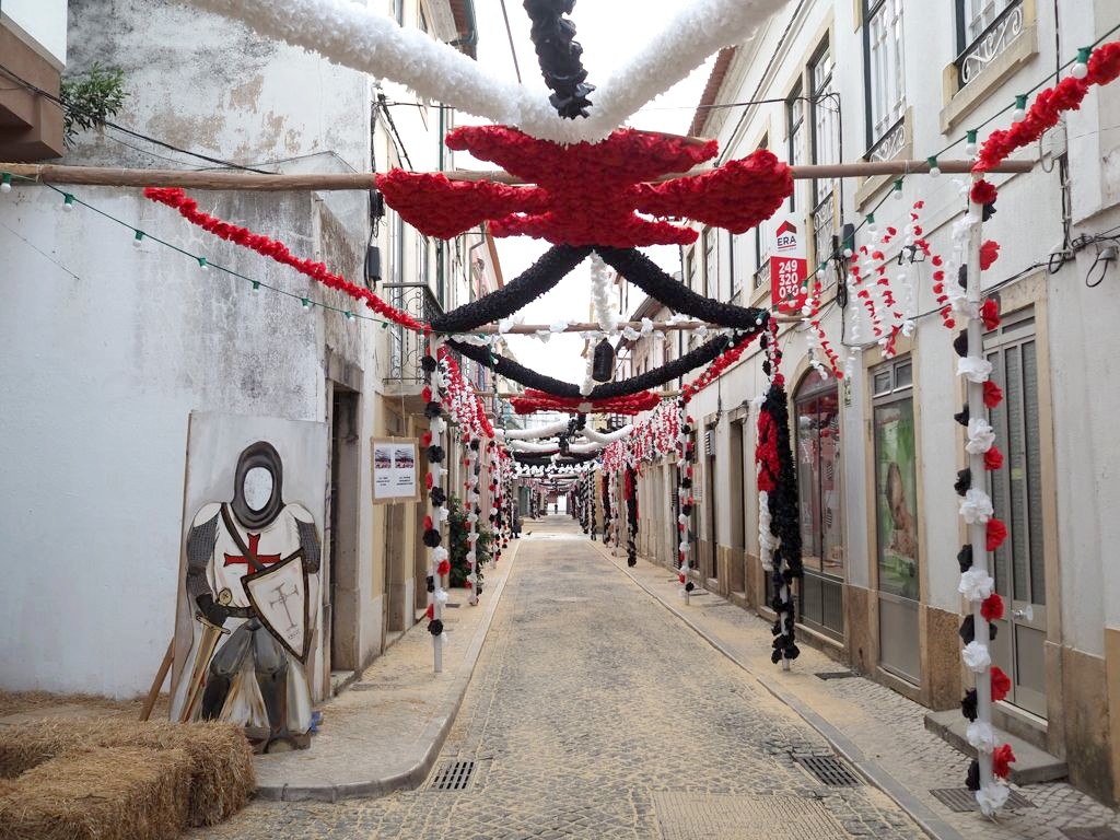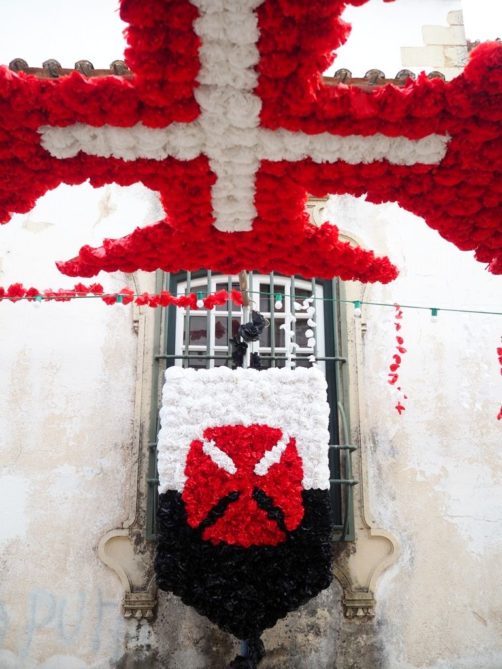 Pour assister au gros des festivités de la Festa dos Tabuleiros, nous avons passé quatre nuits à Tomar, à l’hôtel dos Templarios. L’hôtel doit son nom au fait que la ville de Tomar est connue pour être la ville des Templiers au Portugal. C’est l’Ordre des Templiers qui a fait construire la ville au 12ème, ainsi que le château de Tomar et le Couvent de l’Ordre du Christ, Tomar étant à l’époque un point stratégique important à la frontière avec le monde musulman.