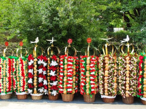 Cet été, j’ai eu la chance d’assister à un événement unique qui n’a lieu que tous les quatre ans au Portugal : la Festa dos Tabuleiros (ou « Fête des Plateaux » en français) à Tomar, à 1h30 au nord de Lisbonne dans la région du Centre du Portugal. Egalement appelée « Festa do Divino Espirito Santo » ou Fête du Saint-Esprit, cette fête religieuse unique au monde est l’un des plus grands rassemblements de l’année au Portugal. Dans cet article, je vais vous faire découvrir avec moi cette fête haute en couleurs qu’il faut selon moi voir au moins une fois dans sa vie tant cela ne ressemble à rien d’autre.