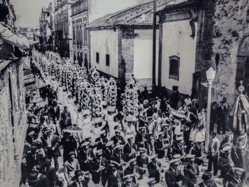 On peut voir quelques photos d’époque de la Festa dos Tabuleiros au siècle passé à la petite expo sur les Tabuleiros à Mata dos Sete Montes à Tomar.
