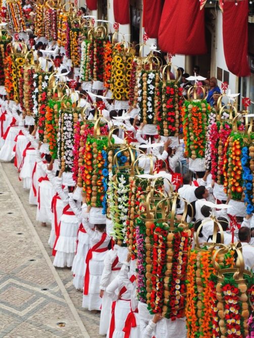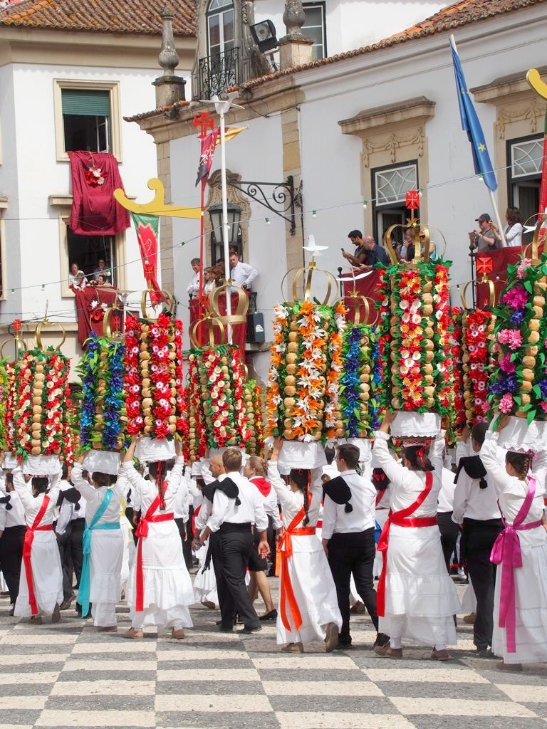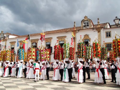La Festa dos Tabuleiros est l’une des plus anciennes fêtes religieuses et culturelles au Portugal. Les célébrations sont liées au culte du Saint-Esprit, qui s’est développé au Portugal dès le 14ème siècle sous l’influence de la Reine Sainte Isabelle de Portugal. C’est elle qui a lancé un grand mouvement de solidarité chrétienne et instauré la Congrégation du Saint-Esprit, avec des festivités et des rituels bien souvent empruntés aux traditions païennes déjà existantes.