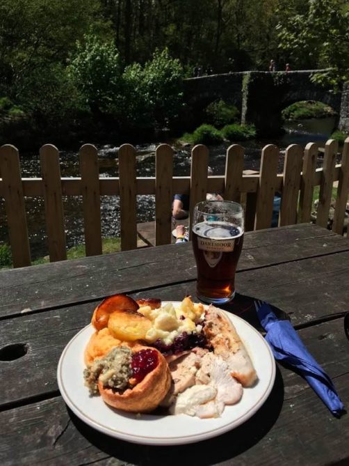 Au retour, nous nous sommes cette fois-ci arrêtés à la Fingle Bridge Inn, une auberge typiquement anglaise dans un cadre féérique, au cœur du Dartmoor National Park, un parc que nous n’avons pas vraiment eu le temps d’explorer mais où je me suis promise de revenir tant ça avait l’air magnifique !