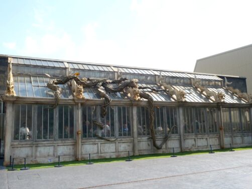 On pénètre ensuite dans le « lobby », le grand espace qui se trouve avant le début de la visite en elle-même. Vous y trouverez un grand dragon, quelques expos saisonnières, le plus grand magasin de souvenirs des studios, et de quoi manger ou boire un verre en attendant votre tour, ou à la fin de votre visite. La nourriture est bonne sans plus, mais les pâtisseries sont vraiment mignonnes, il faut l’avouer !
