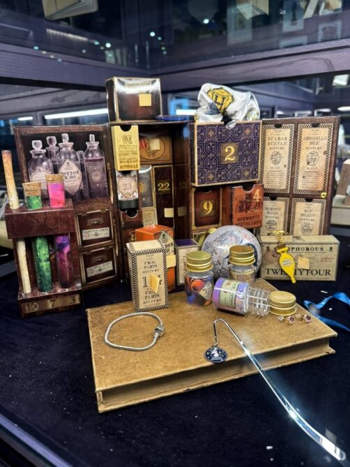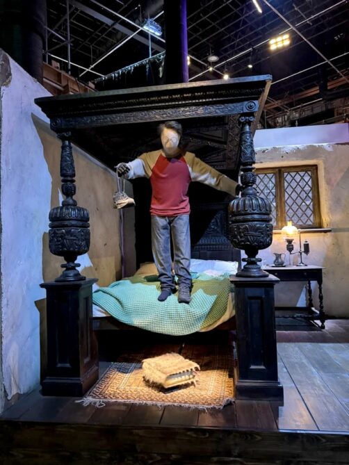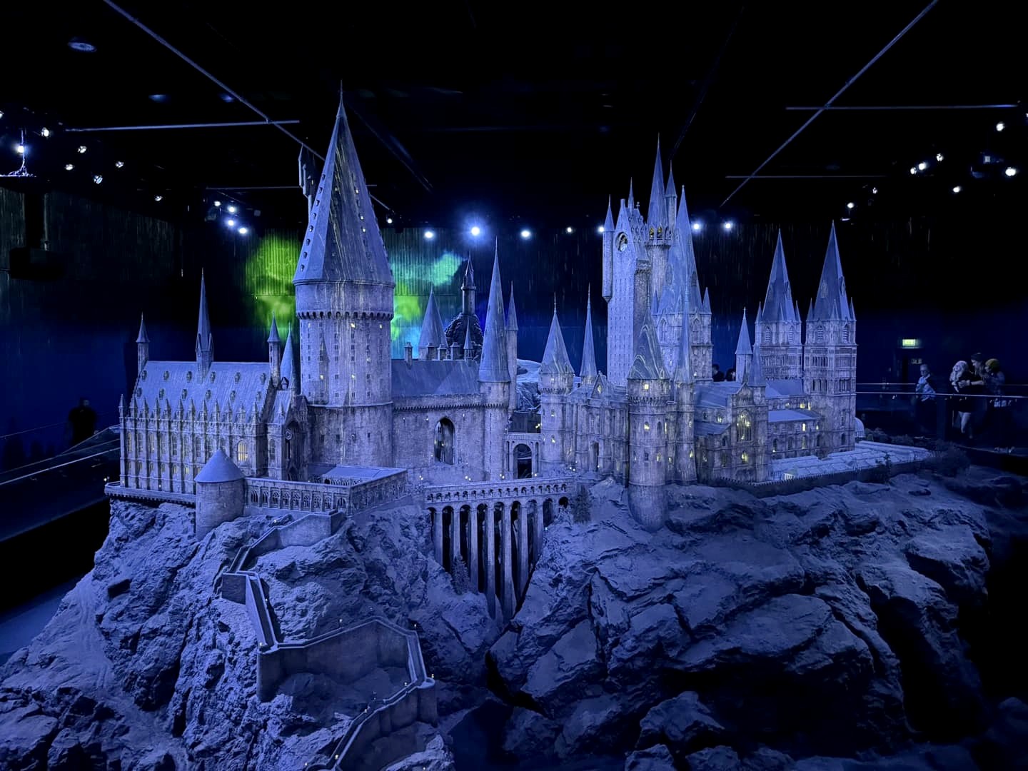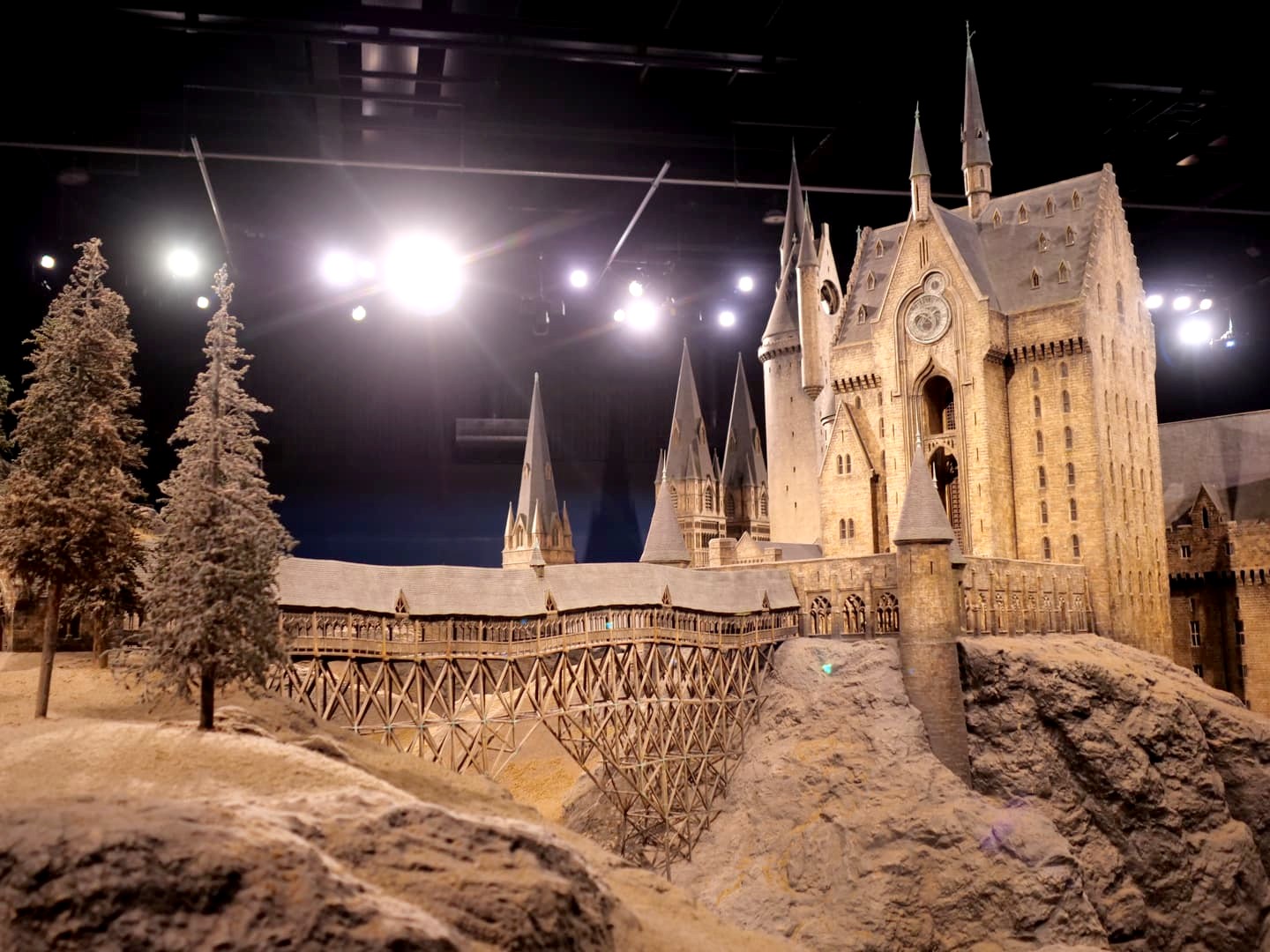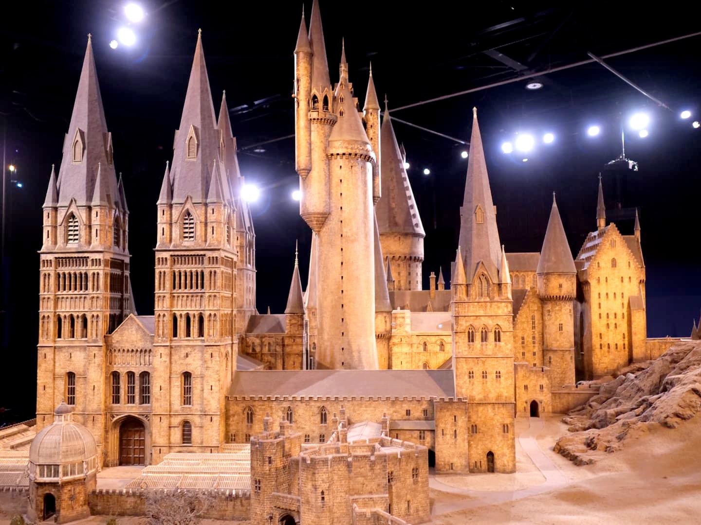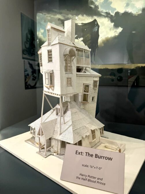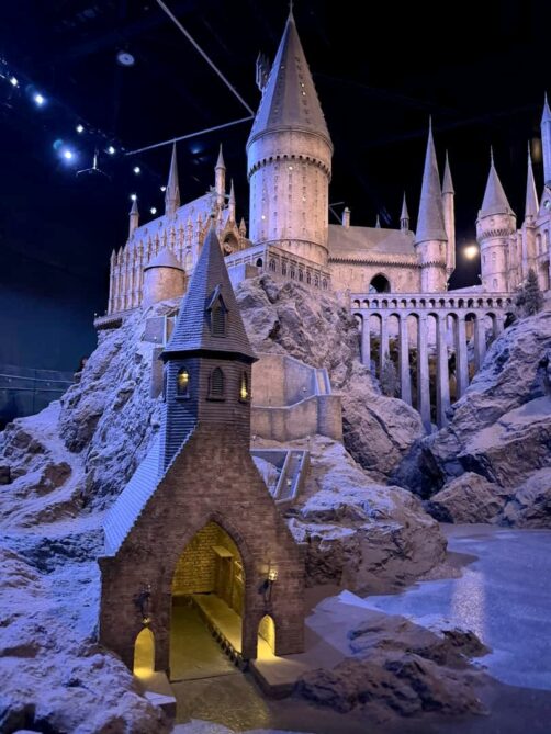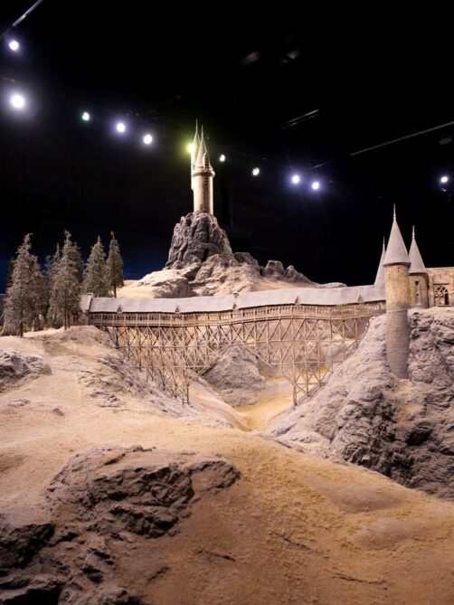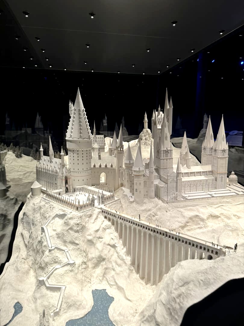 Enfin, la visite se termine par une visite du département artistique qui reprend les croquis, dessins, etc ayant mené à la réalisation des costumes, décors et personnages, suivi du clou du spectacle, la maquette 1:24 du château de Poudlard. C’est cette maquette-là qui apparaît dans tous les films à part le dernier (ça aurait coûté trop cher de la détruire, et re-re-redétruire…).