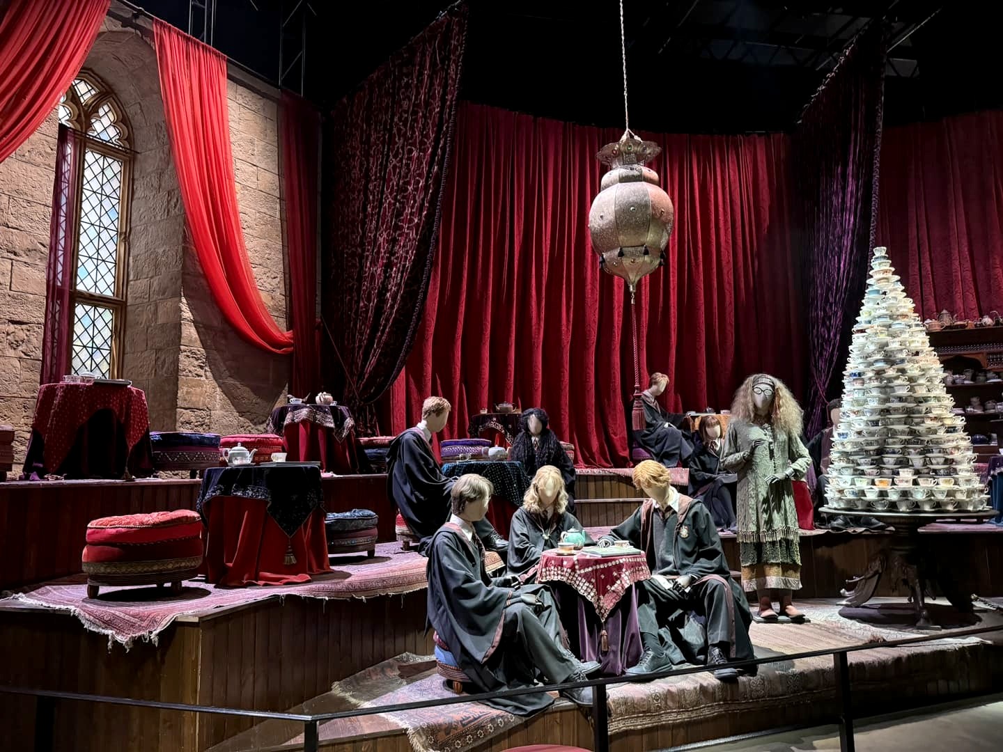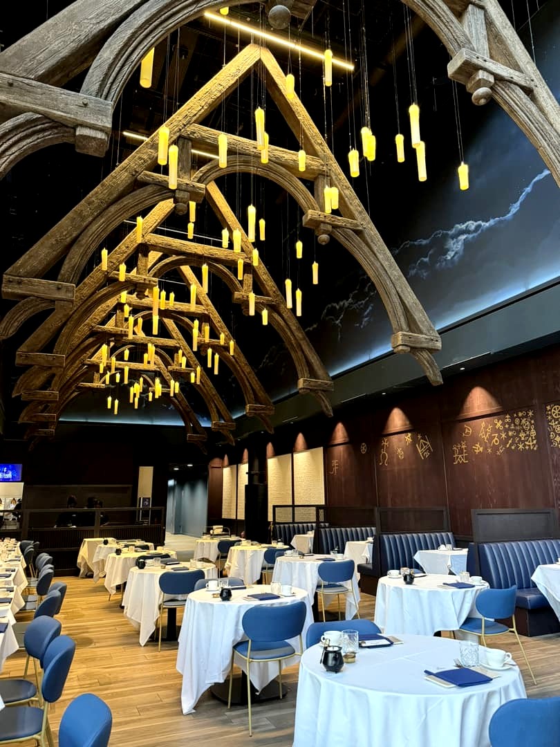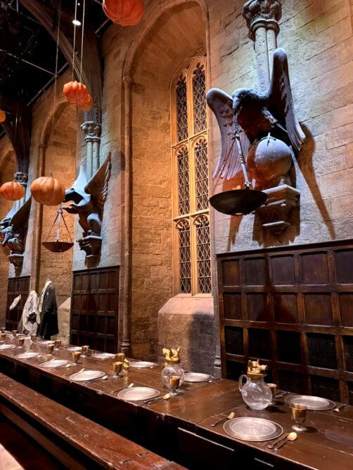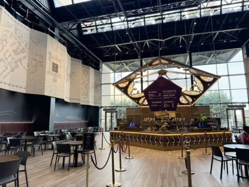 Venir le matin permet aussi de mieux gérer les différents espaces où vous pouvez vous arrêter pour manger ou boire un verre : à votre arrivée, vous pouvez boire un verre ou prendre le petit-déjeuner au Studio Café ou au Starbucks situé à l’entrée, avant le scan des billets, en attendant votre créneau (ils sont assez strict sur celui-ci). Comme vous le verrez plus en détails plus bas, la visite est divisée en deux grosses parties, et entre ces deux parties, au niveau des décors extérieurs, vous trouverez un restaurant où vous pourrez manger ou juste boire un verre. Si vous avez bien timé la visite, vous devriez y être pile à temps pour le lunch ! Ensuite, à la fin de votre visite, vous pouvez à nouveau manger dans le restaurant de l’entrée avant de repartir, qui propose même (sur réservation ici) un afternoon tea dans un cadre très sympa !