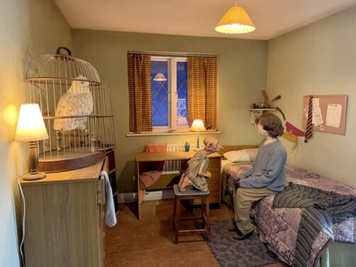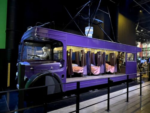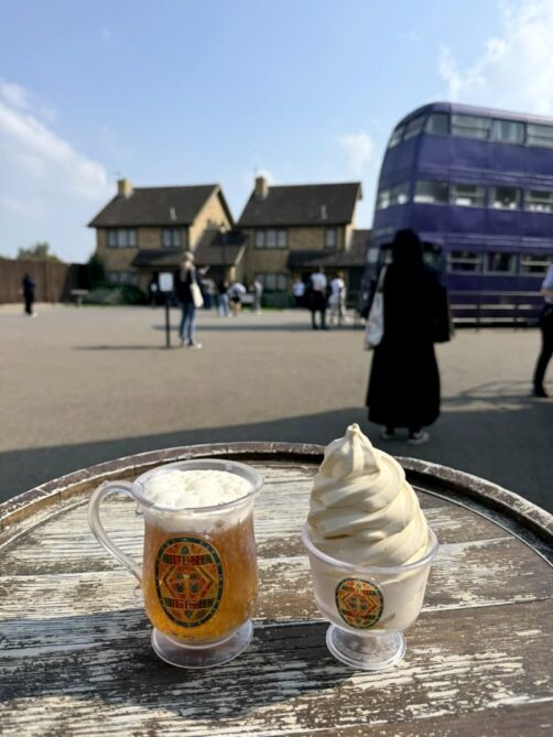 Après cette première partie en intérieur, vous arrivez dans la zone appelée « The Backlot ». Vous pourrez y découvrir d’autres décors, mais cette fois en extérieur (il vaut donc mieux prendre une veste si vous venez en hiver). On y trouve notamment la maison des Dursley à Privet Drive (et la petite nouveauté, c’est qu’on peut maintenant en visiter aussi l’intérieur !), le pont de Poudlard, ou encore le Knight Bus (Magicobus). Il y a aussi un espace pour manger et boire, le Backlot Café. J’y ai pris une Butterbeer ainsi qu’une glace, dont on peut garder les verres à la fin, pour un petit souvenir sympa !