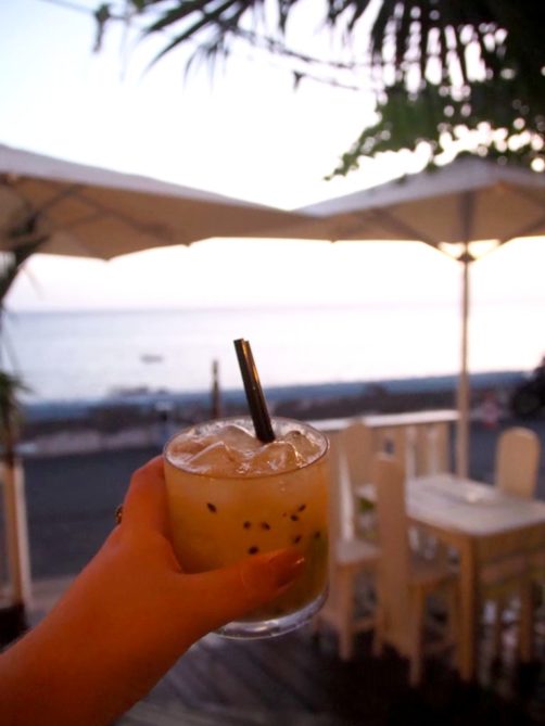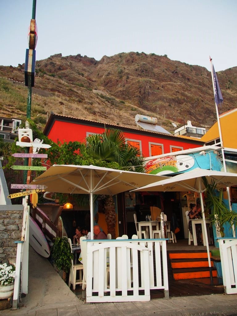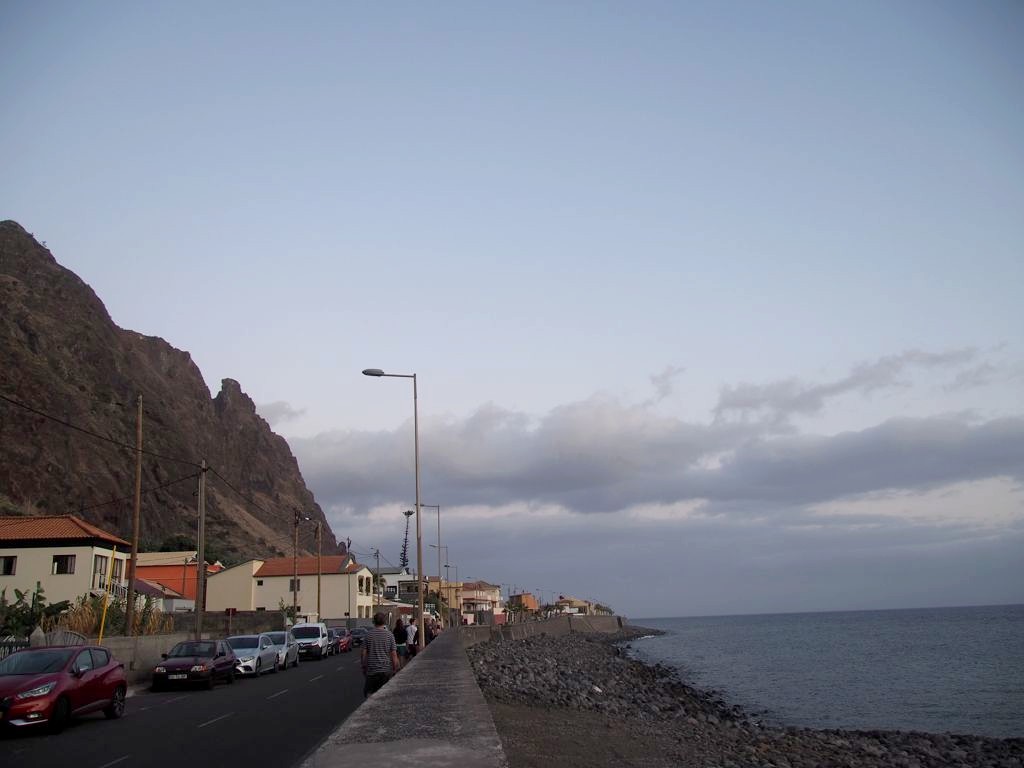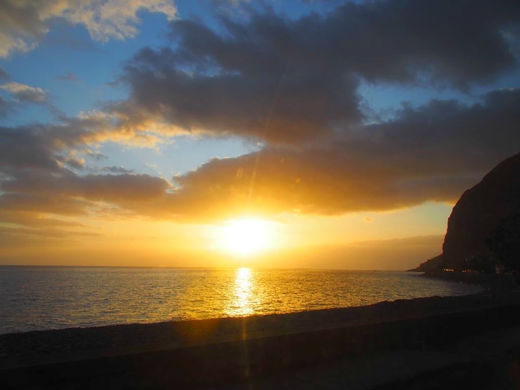 Nous avons pris la « Sunset Route » : nous avons longé la côte sud jusqu’à Paul do Mar, où nous avons mangé dans un petit resto super sympa avec vue dans une ambiance très relax (avec même un petit air des Antilles), Maktub. La spécialité de la maison : la caïpirinha fruit de la passion. Et en repas, du poisson frais bien sur. Même si le coucher du soleil était un peu couvert, nous avons donc passé un super moment !