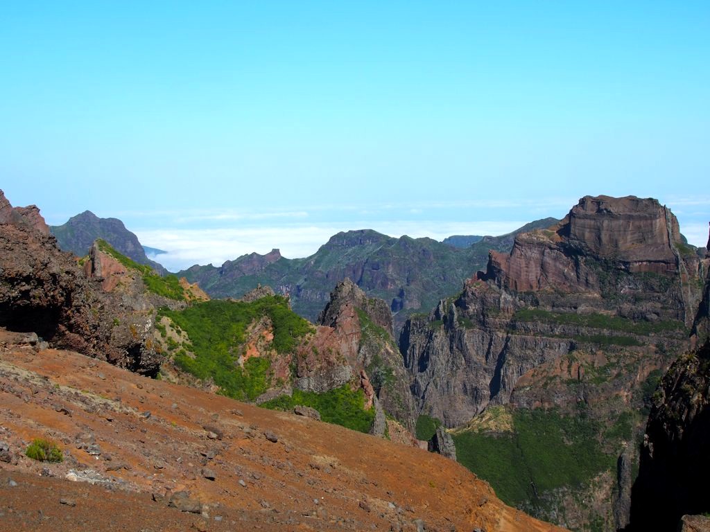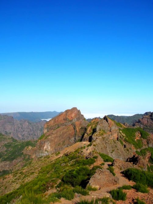 Nous avons vraiment eu de la chance avec la météo, car il peut souvent faire brumeux dans les hauteurs de l’île (notre guide nous a même dit que ça arrivait rarement que ça soit si dégagé, c’est dire !). Nous sommes allées au plus haut sommet de l’île accessible en voiture, le Pico do Arieiro, qui est également le point de départ du trek des trois sommets qui a l’air incroyable pour les bons marcheurs (aussi possible à faire sans voiture d’ailleurs puisque des compagnies organisent des transferts depuis Funchal) ! C’est aussi un spot connu pour le lever du soleil. Les paysages étaient grandioses, j’en suis restée bouche bée…