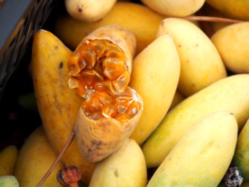 Une fois arrivés sur la côte nord de l’île, nous avons été faire un tour dans le village de Santana : avec ses maisons traditionnelles colorées, c’est la carte postale par excellence à Madère ! Ces maisons ont été reconstruites pour les touristes mais ça reste très joli à voir. Par contre, un peu plus loin dans le village il y en a encore quelques maisons authentiques toujours réellement habitées. J’en ai aussi profité pour goûter à d’autres sortes de fruits de la passion au petit marché aux fruits et légumes de Santana (beaucoup moins cher ici qu’à Funchal !).