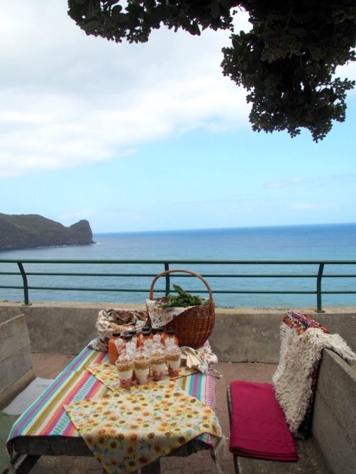 Nous avons fini la journée avec un lunch tardif avec vue, face aux falaises de Faial. Nous y avons dégusté un délicieux lunch végétarien qui avait été préparé par Vantastic, le foodtruck qui se trouve dans le centre de Funchal et qui peuvent préparer des picnic sur demande. C’était excellent !